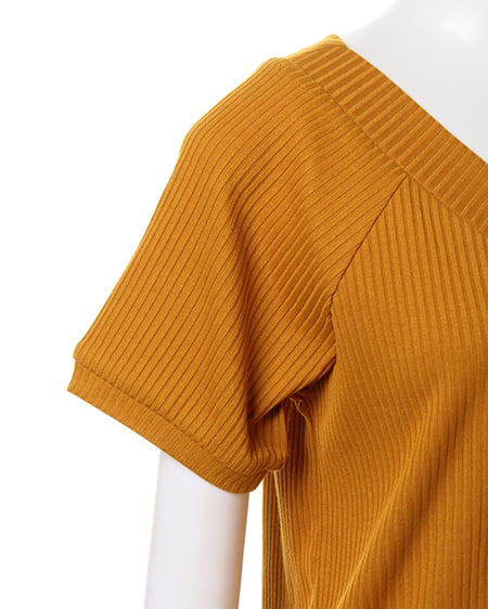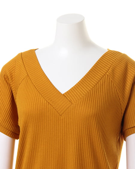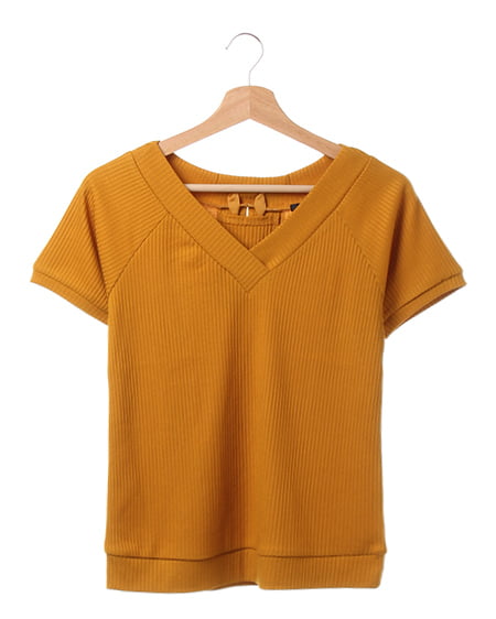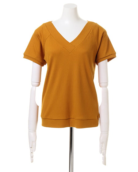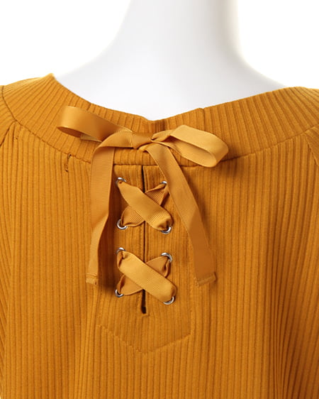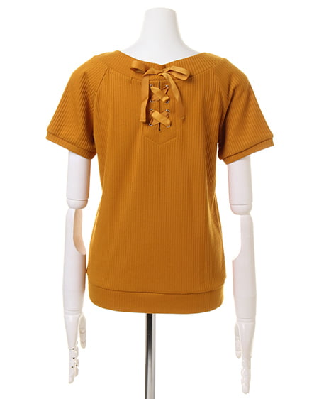 ベーシックなシルエットにバックのレースアップリボンが映えるリブトップス。しなやかで伸縮性のある生地で仕立てているので着心地は抜群。身頃部分のリブが縦長のシルエットを強調し、スタイルアップも叶えてくれる優秀なアイテムです。Vネックデザインですっきり着こなせ、大人っぽく仕上がります。スカートスタイルにおすすめ。