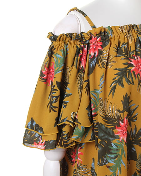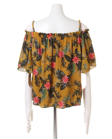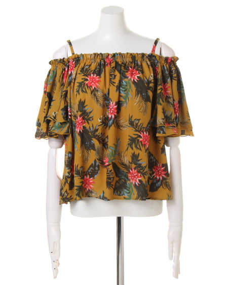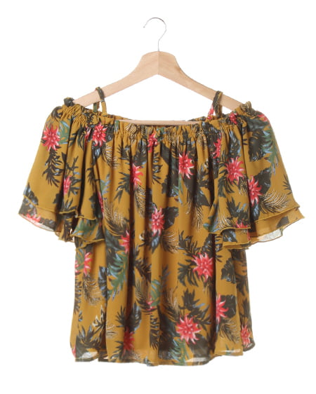 これからの季節に取り入れたい、リーフ柄のオフショルトップス。色鮮やかなリーフ柄がパッと目を惹き、コーディネートの主役になる1枚。ひらひらと動きのある2段フレア袖がフェミニンな女性らしさを引き立たせてくれます。肩紐は取り外し可能なので、肩を落としてオフショルとしてはもちろん、その日の気分やコーデによってアレンジしても◎。1枚で存在感あるルックスなので、今季のトレンドはワイドパンツやデニムなどを合わせてカジュアルダウンさせるのがオススメです。