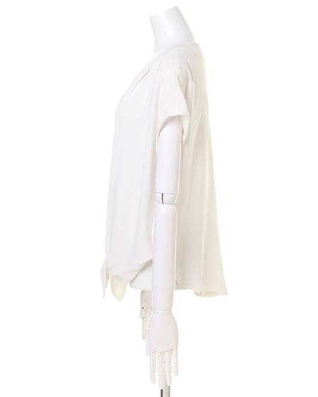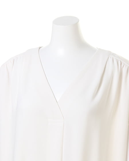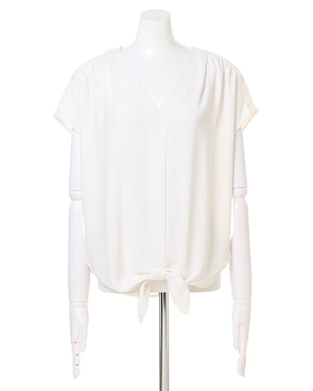 抜け感のあるスキッパーの胸元が大人っぽさを醸し出すプルオーバーシャツ。シンプルなワンカラーながら、裾部分のリボンデザインがコーデにメリハリの効かせトレンド感のあるスタイルが完成する1枚です。とろみのある柔らか素材で肌馴染みも良く、デコルテが綺麗に見える深めのVネックが程よい抜け感をプラス◎。前後にタックを施し、アクセントを効かせたルックスがこなれ感のあるスタイリングを叶えてくます。スカートを合わせたフェミニンコーデはもちろん、デニムやワイドパンツを合わせて、カジュアルダウンするのもオススメ。