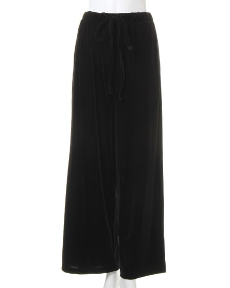 艶のあるベロアが上品な雰囲気に仕上げてくれるワイドパンツ。ドレッシーな印象ながらも、今シーズンらしいワイドシルエットに仕上げることでトレンド感のある1枚に。程良い光沢感は、さらっとトップスを合わせるだけでこなれた雰囲気に仕上げてくれます。ポケット付きのデザイン、オールゴム仕様のウエストで楽に穿けるのも嬉しいポイント◎。ゆったりニットやスニーカーでカジュアルに着こなすのがオススメです。