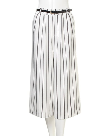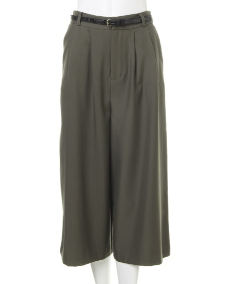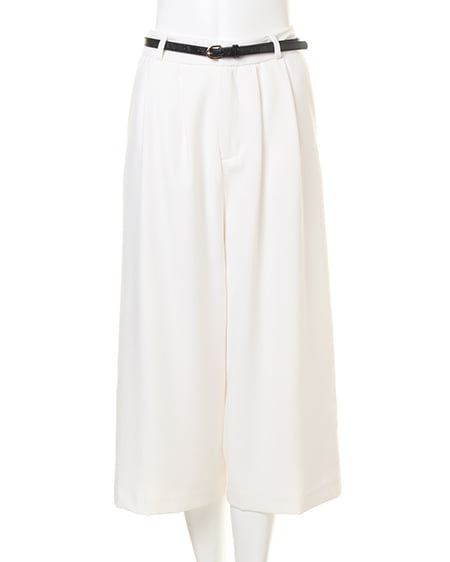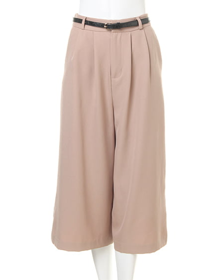 スタイリングに大活躍すること間違いなしのベルト付きガウチョパンツ。フロントにはタックを施しふんわりと広がるワイドなシルエットを表現。シンプルでコーディネートしやすく、バックウエストはゴム仕様なので穿き心地も抜群です。合皮ベルトがセットなのも嬉しいポイント。抜け感のある今季らしいトレンドフォルムがシンプルな着こなしをグッとお洒落にアップデートしてくれます。トップスはコンパクトに短めの丈感やフロントインなどで合わせて、すっきりと好バランスにまとめるのがオススメ。シンプルだけど手抜き感のないスタイルが叶う、オシャレ女子にピッタリなアイテムです。