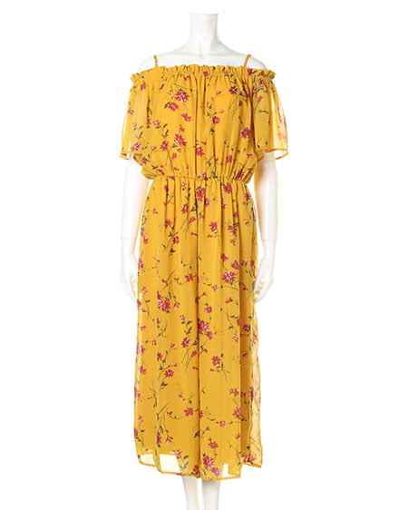 ふわっと可愛らしいフラワープリントのオフショルコンビネゾン。ひらひらと動きのあるフレア袖が、フェミニンな女性らしさを引き立たせてくれます。肩紐は取り外し可能なので、肩を落としてオフショルとしてはもちろん、その日の気分やコーデによってアレンジしても◎。柔らかいシフォン生地で着心地も抜群です。ウエスト部分はフィット感の良いゴムギャザーでメリハリをプラスしました。1枚でサマになるアイテムなので、靴やアクセサリーで雰囲気を変えてアレンジするのがオススメ。