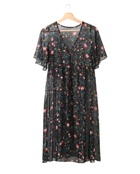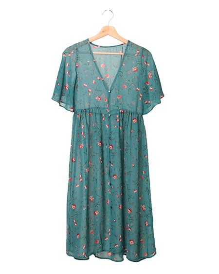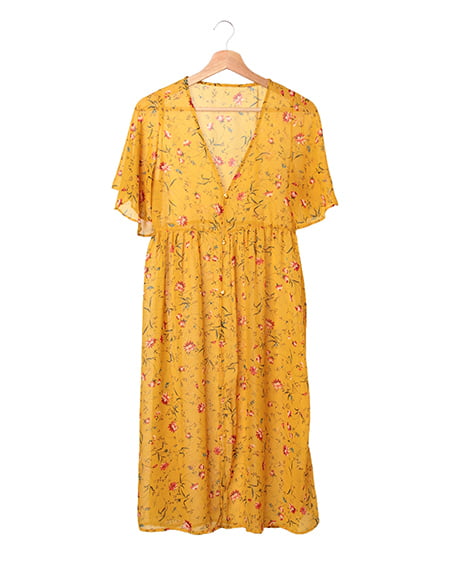 今季トレンドの色鮮やかな花柄が目を惹くシフォンガウン。軽やかなシフォンの生地感がシーズンムード漂い、フロントボタンを閉じてワンピース風にもアレンジが楽しめる旬なアイテム。胸下の切り替しのギャザーから、ふわっと広がる裾にVネックにフレアになった袖が華やかな印象にしてくれます。長めの着丈でさりげなくスタイルアップ効果も◎。デニムに合わせてきれいめカジュアルにはもちろん、ワイドパンツにあわせラフなスタイリングもオススメです。いつものコーデにさらっと羽織るだけで、トレンドライクなスタイルが完成する1枚。