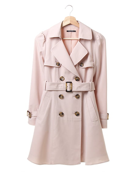 ワンピースのようなフレアシルエットがレディなトレンチコート。ウエストをキュッと絞ったフィット&フレアラインで、ドレス感覚で着用できるガーリーなシルエットの1枚です。バックスタイルのウエスト部分にはギャザーを入れフレアを出しているので、後姿もぬかりなく女性らしさをアピール。デイリー使いから、結婚式などのオケージョンまで幅広いシーンで活躍してくれます。ベーシックなトレンチコートとしてはもちろん、釦をしめてドレスライクに着こなすのも◎。羽織るだけで一気に女子力がアップすること間違いなしの1着です。
