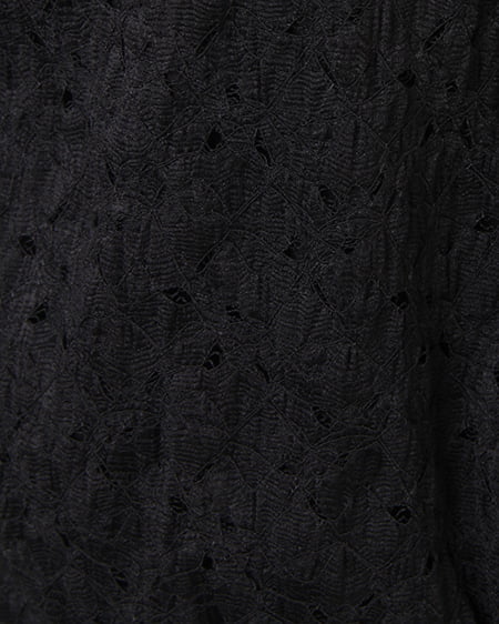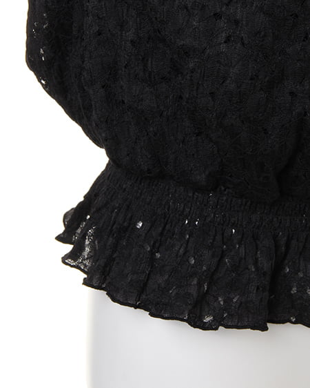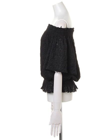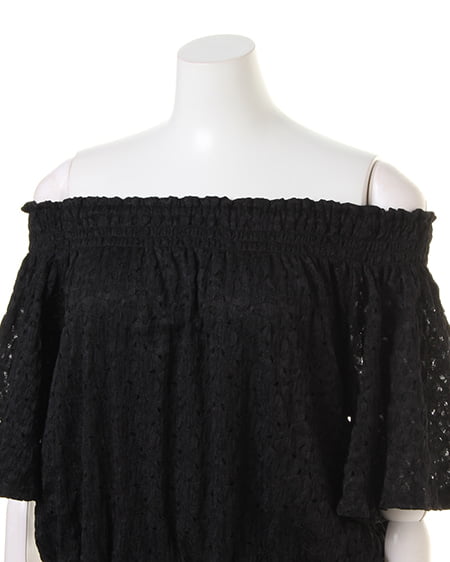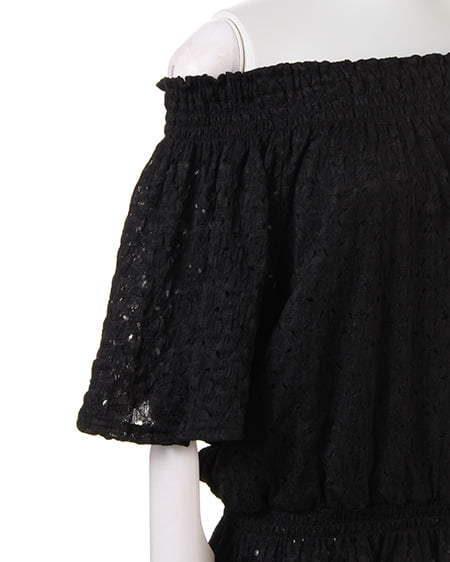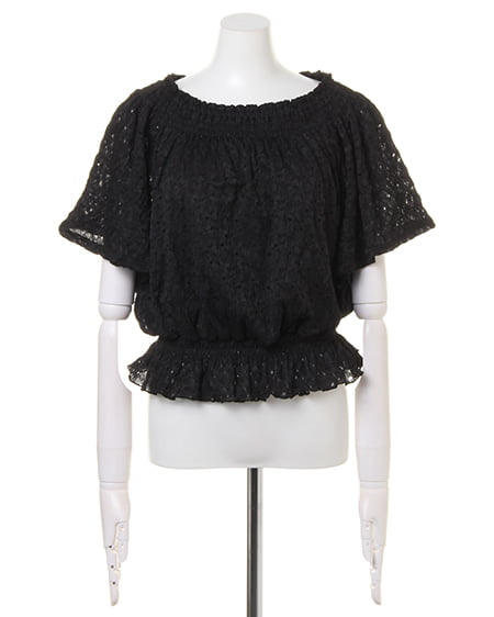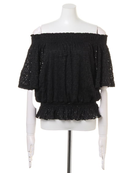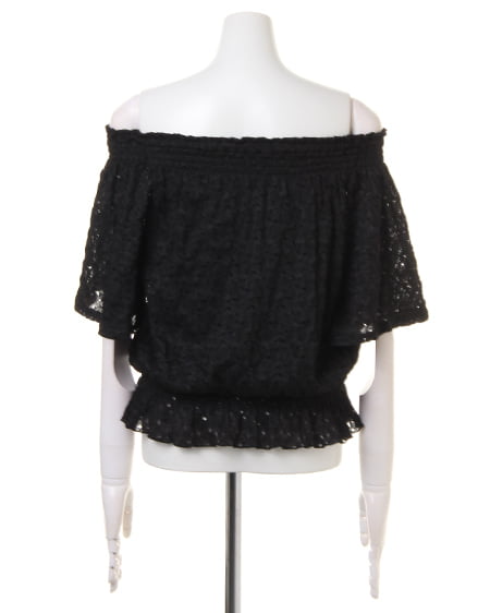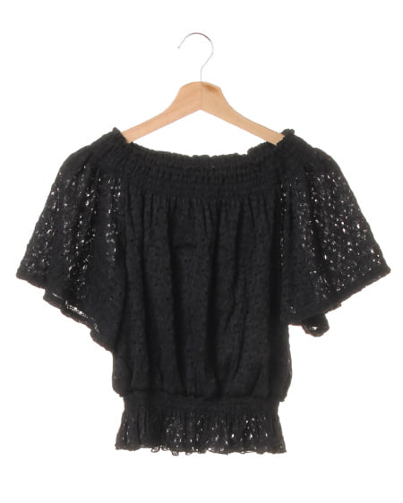 フレアーシルエットとレースの組み合わせが、女性らしいトップスはオフショルダーで今年らしく。ふわりと広がるバタフライスリーブが、二の腕をすっきり見せてくれます。ボディ部分には同じカラーの裏地を張っているので、透け感も気になりません。スリーブ部分は透け感があるので、こなれ感のある絶妙バランスに仕上がります。短めの裾丈で注目のワイドボトムとの相性も◎。