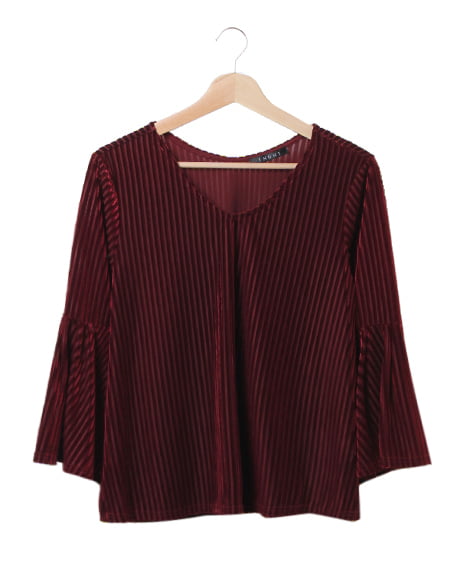 細畝でストライプを表現した生地使いが立体感を生み出し、スタイルアップを叶えてくれる1枚。季節感たっぷりのベロアの光沢と、立体感のある生地の組み合わせが秀逸です。縦のラインを強調することで、上半身をすっきりと。伸縮性があるので着心地も良く、着回し度抜群のおすすめアイテムです。優雅に広がるフレアスリーブが印象的な1枚。ベーシックなカラーでも、表情のあるコーディネイトが完成します。