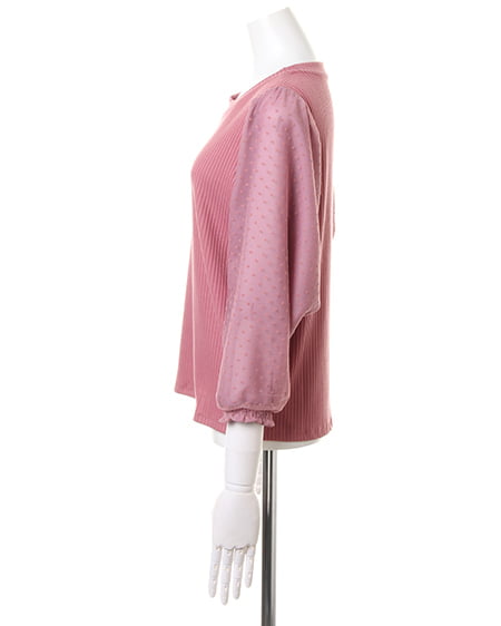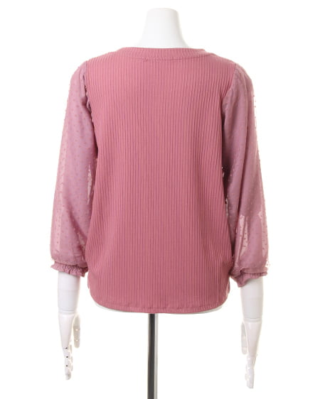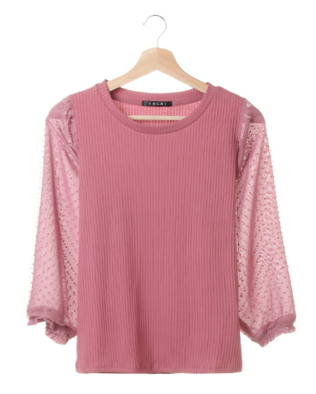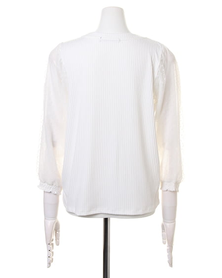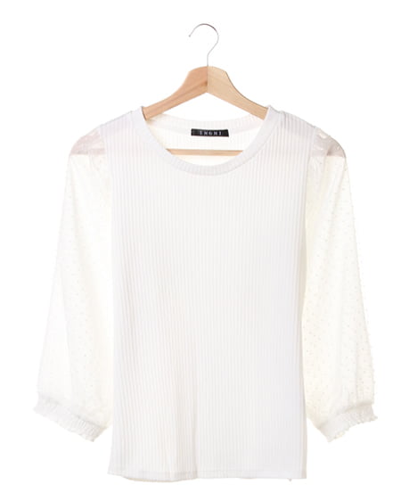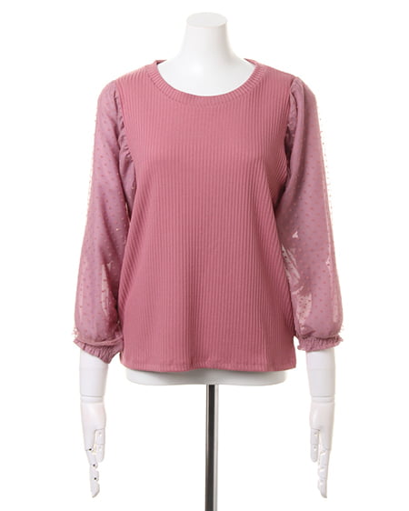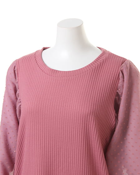 一歩先行くレトロ&カジュアルで、旬のスタイルが完成するトップスが登場。キュートなドットをチュールでさりげなく取り入れることで、洗練された雰囲気に。ふんわりとしたスリーブは袖口をゴムにすることで、すっきりとした印象。ブラウジングも楽しめます。身頃部分は、リブ素材ですっきりと。ボトムにインしてもすっきりキマるので、デイリーに活躍すること間違いナシです。