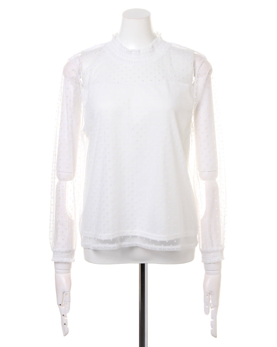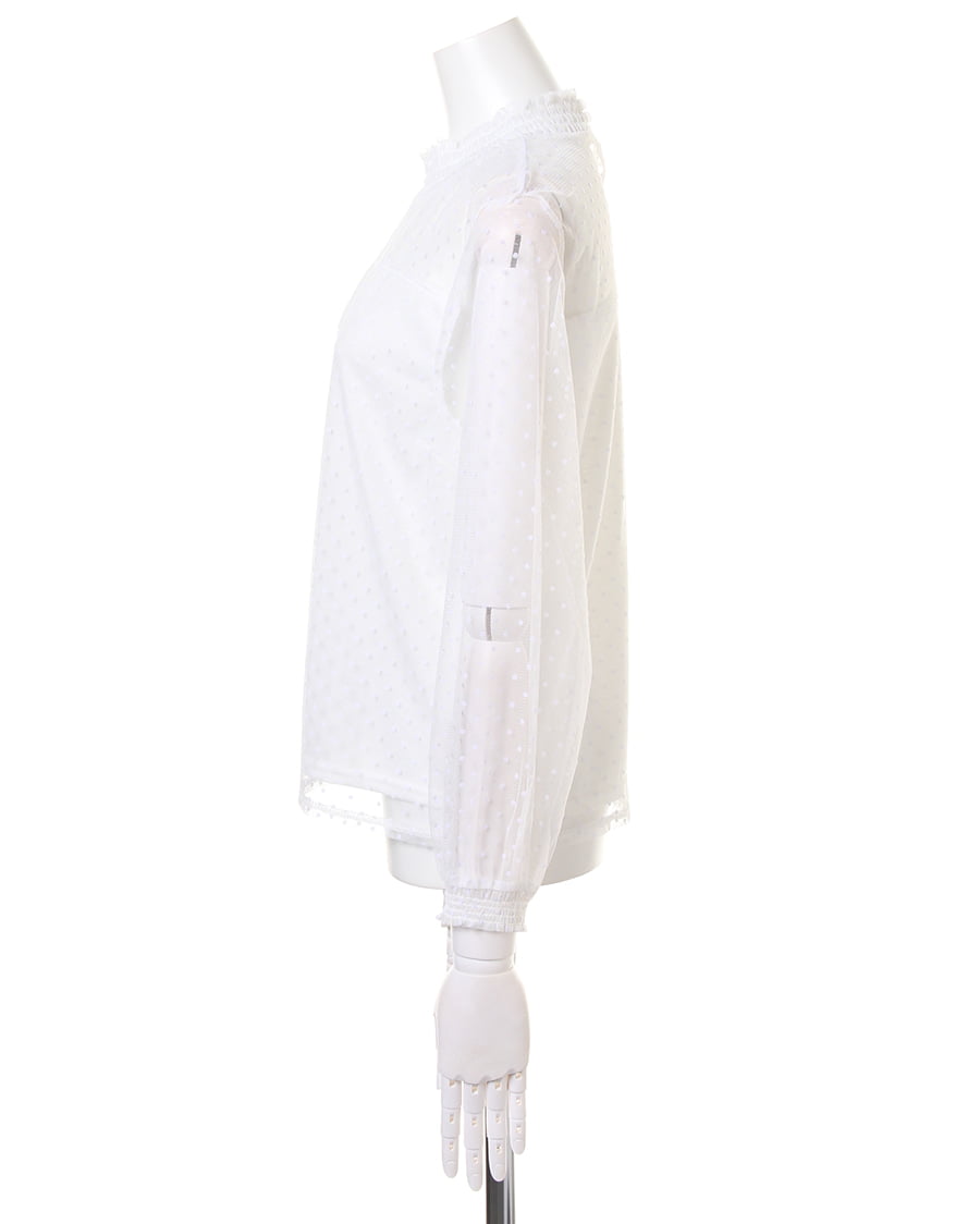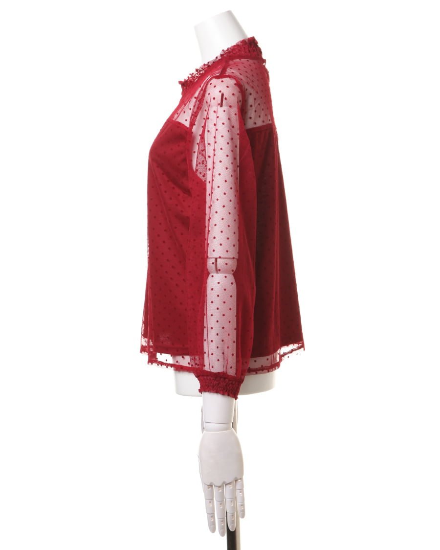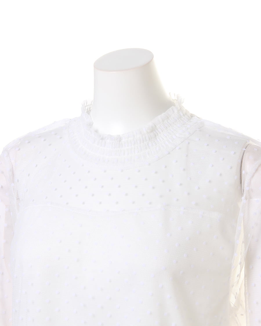 大注目のチュール素材を、クラシカルなドットデザインに仕立てました。首元のシャーリングがレディライクなチュールは、プチハイが上品な仕上がり。フロッキーなドットは凹凸があり、生地に立体的な表情を与えてくれます。キャミソールやビスチェとのレイヤードスタイル、ワンピースやサロペットのインナーなど着回し力抜群。デイリーに使える、トレンドライクな一枚です。