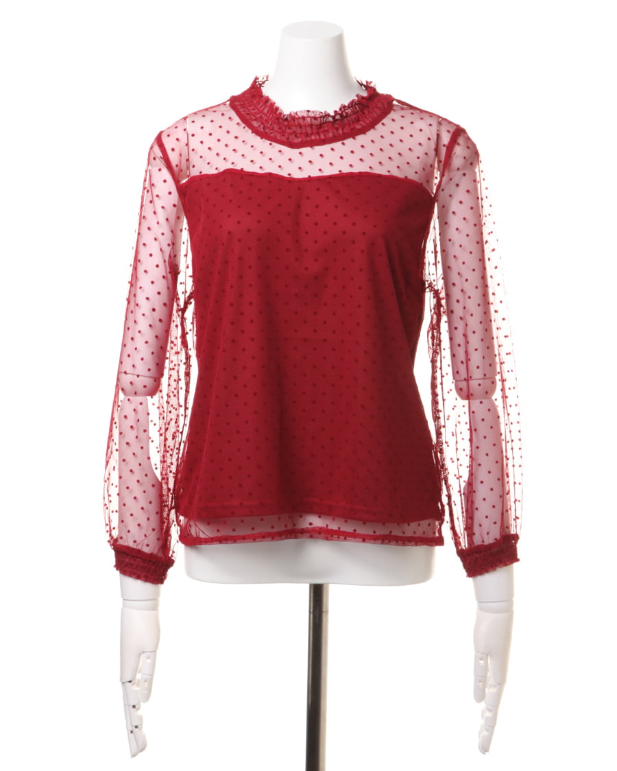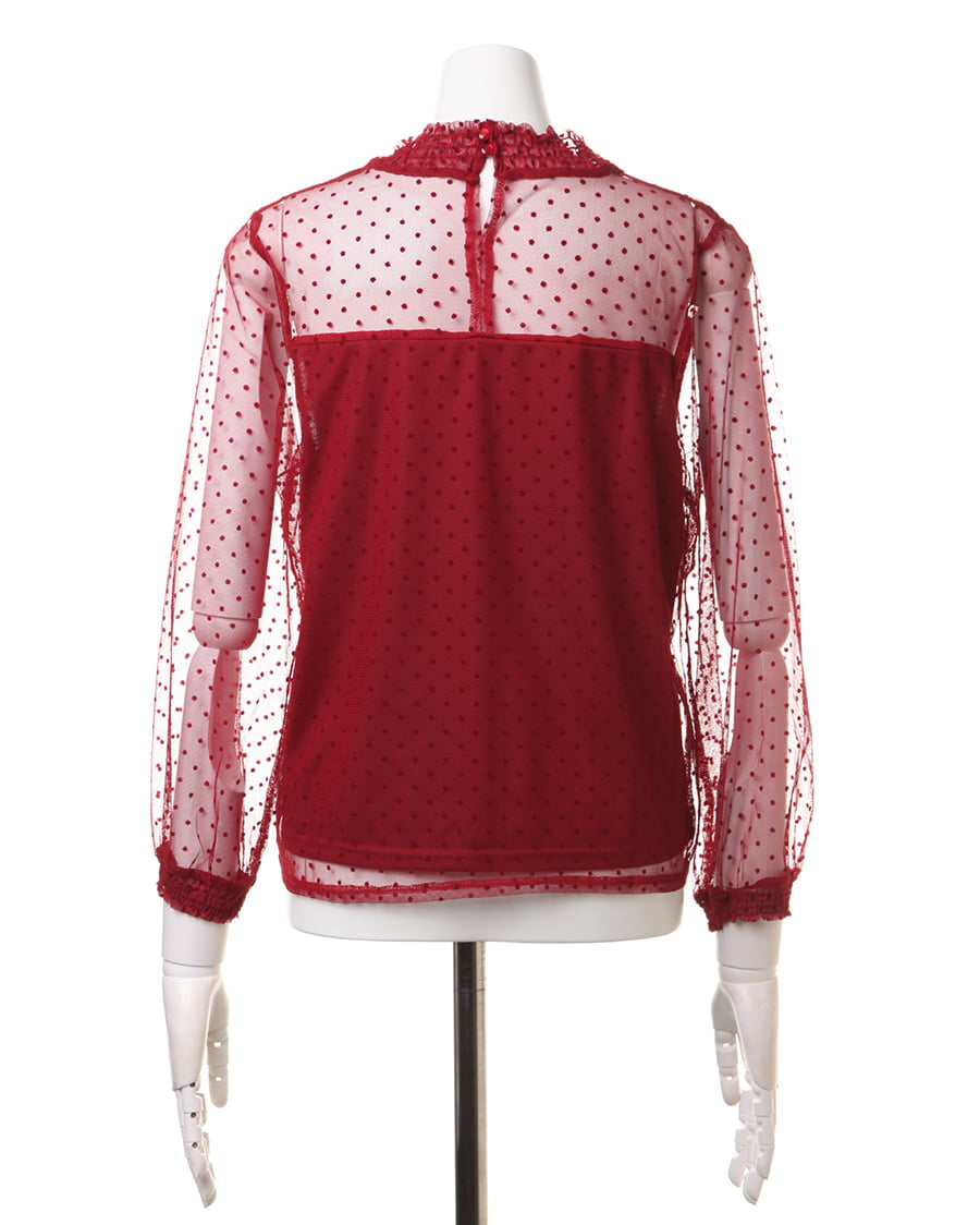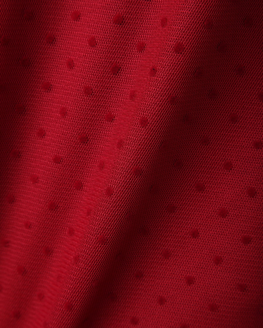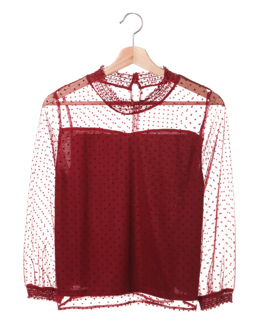 大注目のチュール素材を、クラシカルなドットデザインに仕立てました。首元のシャーリングがレディライクなチュールは、プチハイが上品な仕上がり。フロッキーなドットは凹凸があり、生地に立体的な表情を与えてくれます。キャミソールやビスチェとのレイヤードスタイル、ワンピースやサロペットのインナーなど着回し力抜群。デイリーに使える、トレンドライクな一枚です。