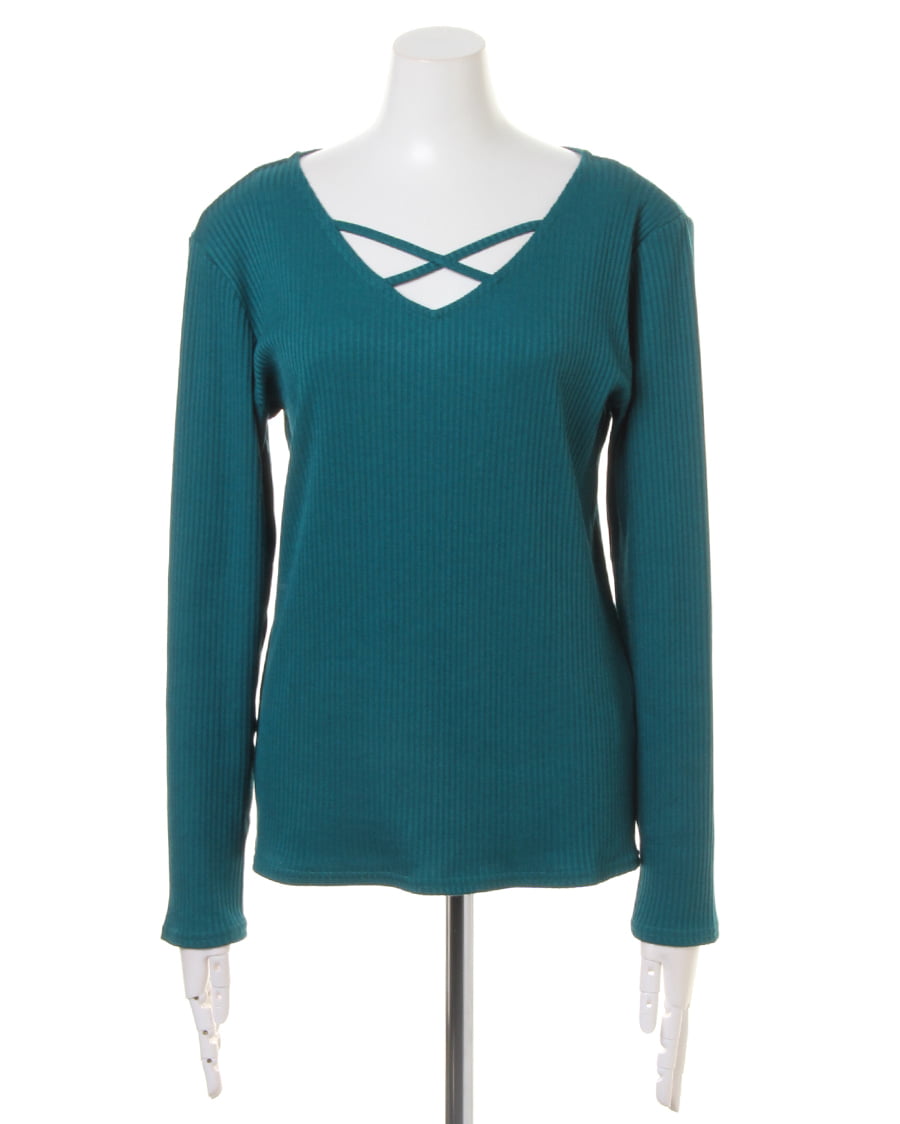 胸元のクロスデザインが今年っぽいリブトップス。伸びのいい生地は、ボディラインにキレイに沿いレディライクなシルエットを演出。柔らかい素材で程よくフィットする着心地。人気のボリュームのあるボトムスとも相性抜群です。ベーシックカラーからアクセントになるカラーまで豊富なカラー展開も魅力的。