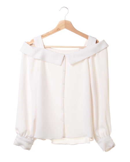 さらりとした生地で仕立てた清楚感あふれるシャツは、オフショルデザインが◎。衿を付ける事で上品な印象をプラスしているので、オンオフ問わずに着られます。程よく着崩したような、落ち感あるシルエットが魅力。太めのショルダーストラップで、安心して着ることができます。注目のフレアスカートと合わせて、優雅に着こなして。