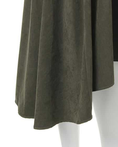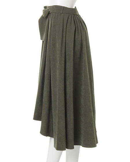落ち着いたカラー展開が、季節感溢れるスカートはイレヘムデザインに注目。前後差を入れることで大人っぽく仕上がるだけでなく、動くたびにゆれるドレープが魅力。共布のサッシュベルト付きなので、ブラウスなどをインしたスタイルもすっきりキマります。バック部分はゴムになっているので、リラックスした穿き心地。