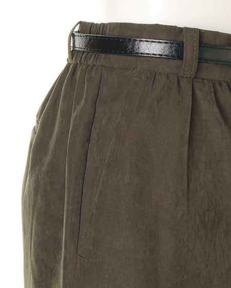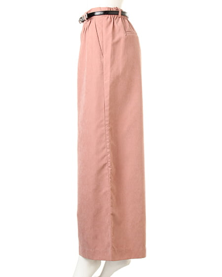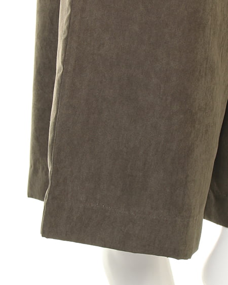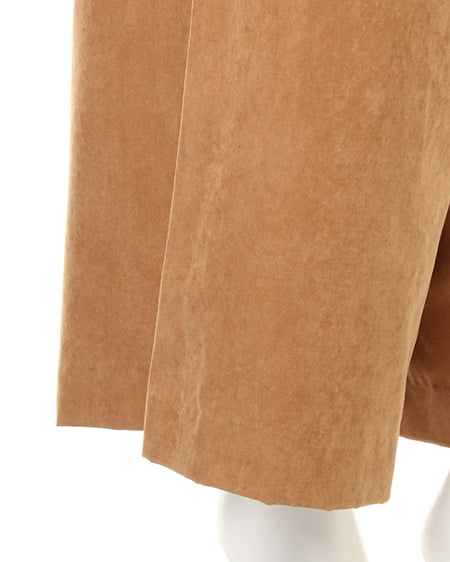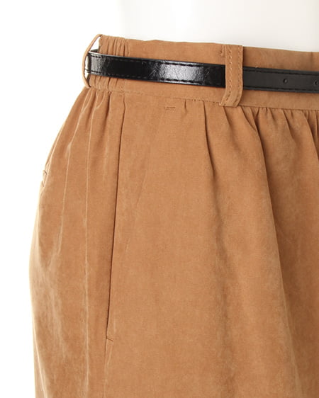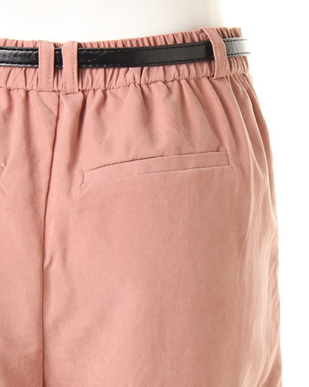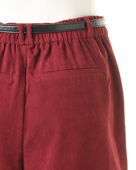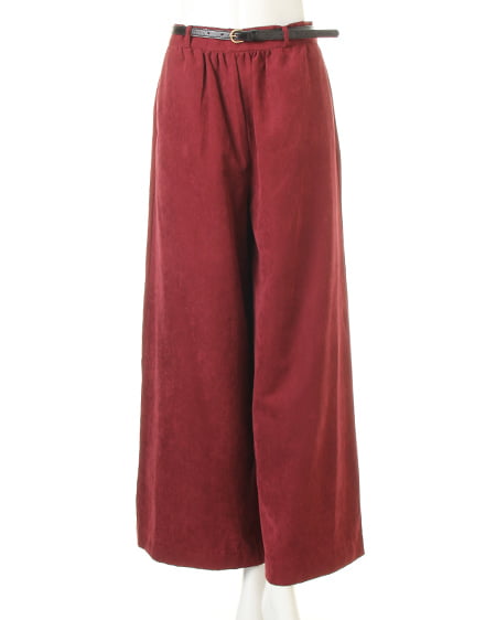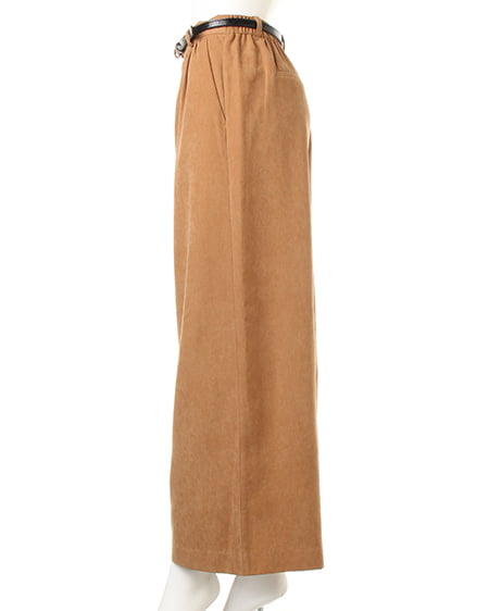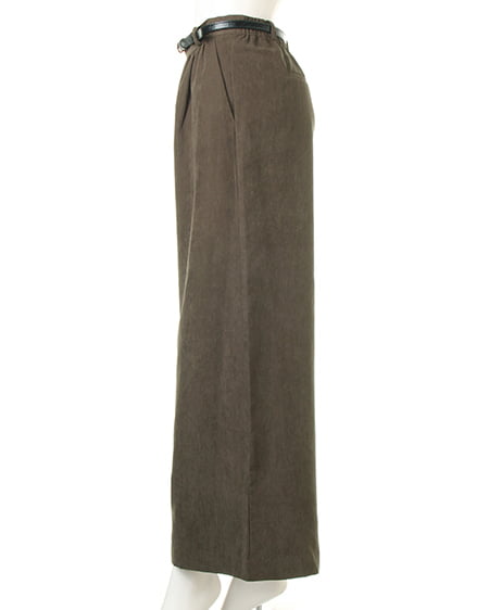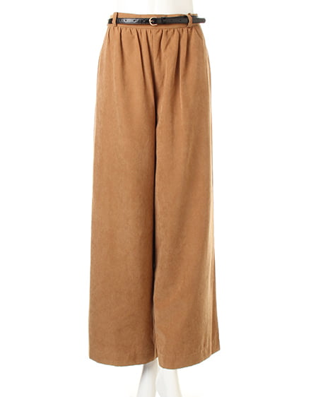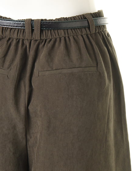 光沢のあるピーチ素材が、シーズンムードを高めるワイドパンツ。落ち感のあるリラックスなシルエットが大人っぽく、ラフに着てもこなれた雰囲気に仕上がります。微起毛の表面感に、上品な艶がエレガントなピーチ素材を使用。ギャザーを施したウエストが、トップスインに最適なワイドパンツ。色違いで欲しくなるカラーバリエーションにも注目です。