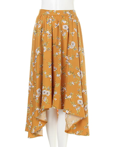 人気のイレヘムスカートと女性らしいフラワー柄が魅力のスカートは、長め丈で落ち着いた雰囲気に。ウエスト部分にギャザーを入れ、裾へ向かって広がる優雅なシルエットに釘付け!伸縮性のあるカット地で着心地も◎。バック部分はゴムになっているのでウエストインしてもすっきりキマります。コーディネートのポイントになるカラー展開も魅力。
