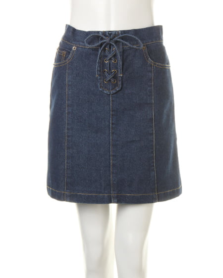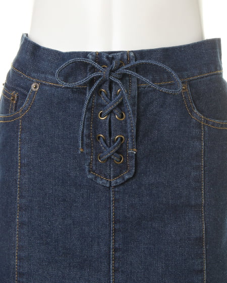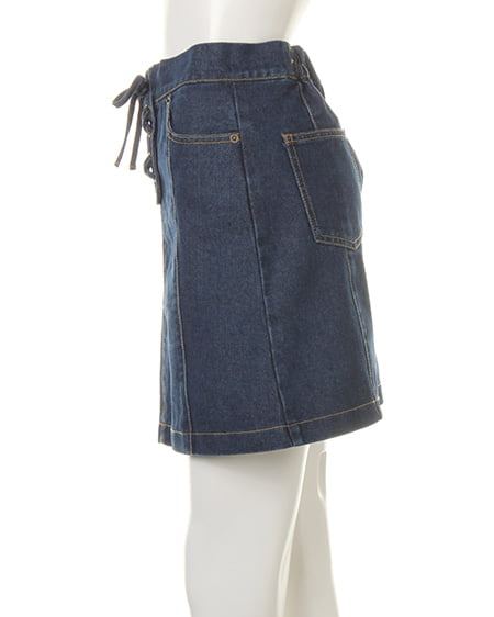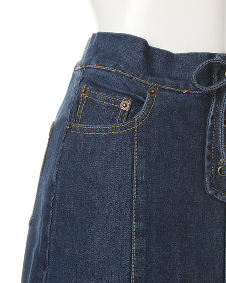 トレンドのレースアップがポイントのオールシーズン活躍するデニムスカート。裾に向かって広がる台形シルエットで、太もものほっそり効果も期待できます。トップスインでレースアップをポイントにしたり、ゆるトップスと合わせてラフに着こなしてもかわいい!ベーシックなシルエットなので、コーディネートしやすくどんなトップスとも好相性。