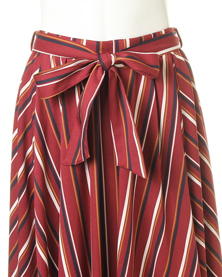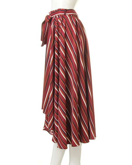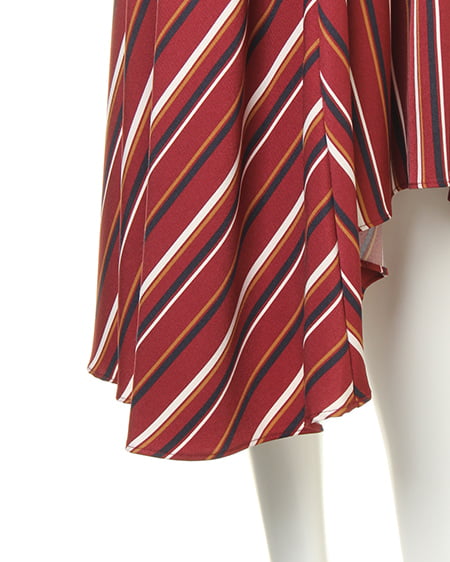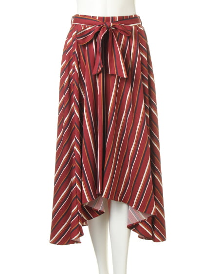 全面にあしらったマルチストライプが、インパクト抜群のスカート。縦長のIシルエットを強調し、脚を長く見せてくれます。伸縮性のある素材でシワになりにくく、お手入れも簡単。後ろを長くしたテールカットが、大人な雰囲気です。ウエスト部分はゴムなので穿きやすのも魅力。サッシュベルト付きで、1枚着るだけで抜け感ある旬スタイルが完成します。