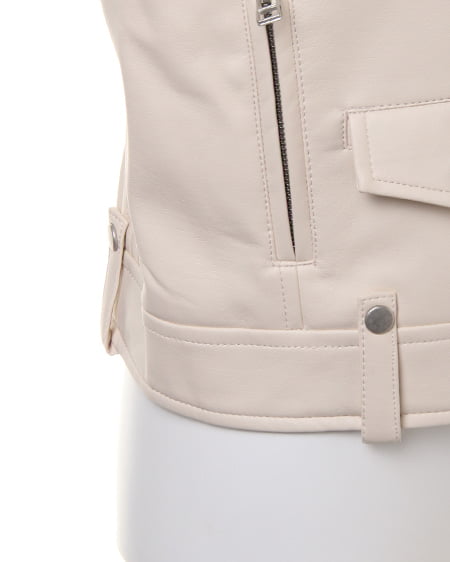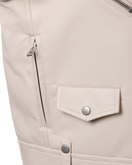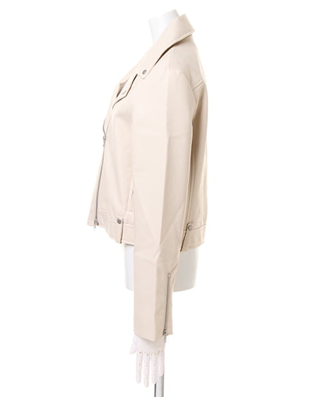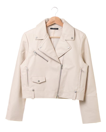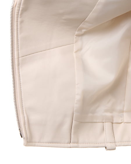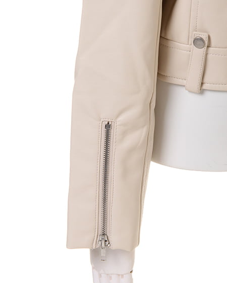 柔らかいフェイクレザーでお手入れも楽ちんな、ライダースブルゾン。ごわつきがなく、体に馴染む着心地でストレスを感じさせません。フロントに施した細部のディテールは、ハード感が強すぎないよう繊細な仕上げでフェミニンなムードに。コンパクトな着丈で、今季トレンドのボリュームのあるボトムスとも好バランスです。