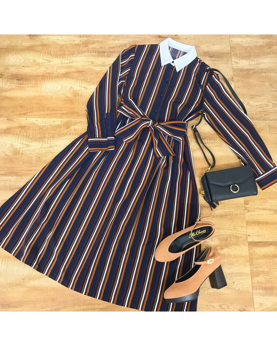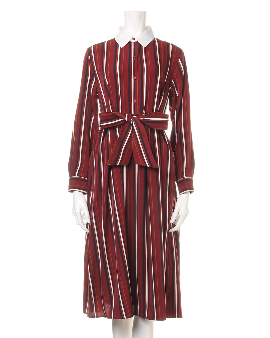 マルチストライプに襟を付けた、ヴィンテージライクなワンピース。今季注目のマルチストライプを一枚で楽しめるワンピースは、ウエストの高い位置に入れた切り替えでスタイルアップも叶う優秀アイテム。シャツデザインを落とし込んでいるので、きちんと感も残しつつカジュアルなスタイルが楽しめます。シューズや帽子で印象が変わるので、小物使いを楽しんで◎。