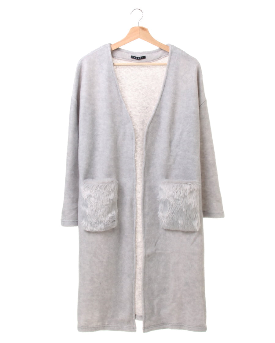 サッと羽織れるオープンフロントの、ロングカーデ。Iラインを強調するロング丈のカーデは、ポケットにフェイクファーを採用した旬のアイテム。肌と触れる部分は、しっとり滑らかな肌触りで着心地抜群。起毛性のある表面は、表情ある素材がシーズンムードを高めます。肩を落としたデザインや、裾に入ったスリットが大人っぽい印象を演出。ベーシックなカラー展開も嬉しいポイントです。