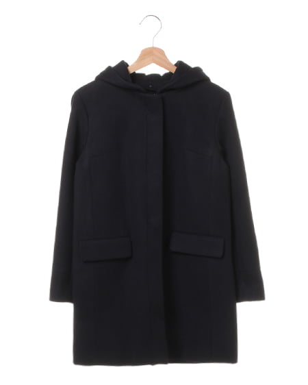 フードとノーカラーの2WAY仕様ができる、大好評のコートが今シーズンも登場。柔らかなタッチで暖かみのある質感と、フロントのファスナー部分を隠した比翼仕立てなど上品な仕上げにこだわったアイテム。ボタンで取り外し可能なフードは、外すとすっきりとしたノーカラーコートに。シンプルなシルエットとベーシックなカラー展開で、合わせるものを選びません。気になるヒップ周りを、すっぽりと隠してくれる丈は女性には嬉しいポイント◎。