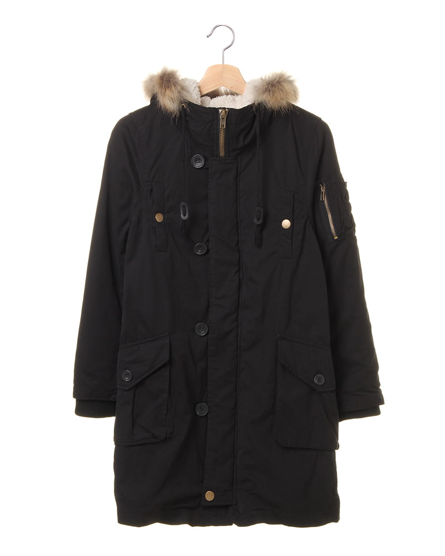 ファーとライナーは取り外しができて、雰囲気をかえて幅広いスタイリングが楽しめるコート。首元をしっかり覆うことで、軽いインナーでも十分なほどの保温性を実現。着回しのきくミドル丈で、お尻が隠れるのも嬉しいポイント。メンズライクなスタイリングからハズシのワンアイテムとしても、オススメです。