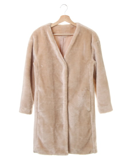 軽量ながらしかっりとした厚みもある、高級感あふれるフェイクファーコート。滑らかな手触りのフェイクファーを贅沢に使用、襟元はフェミニンな雰囲気を与えるノーカラーに仕立てました。比翼仕立てでボタンを見せずすっきりとしたデザインに。ドロップショルダーにコクーンシルエットで、こなれ感を演出します。上品さを感じさせるルックスでデイリー使いはもちろん、ドレスシーンの羽織としてもオススメ◎。
