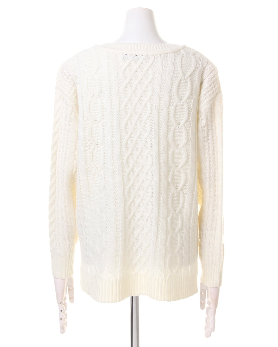 後ろ下がりの見頃や肩を落としたシルエットが、トレンドスタイルをあおるケーブルニット。ニット全体に施されたケーブル編みが、優しい表情を演出。立体的なケーブルが存在感のあるスタイルを叶えつつ、単色カラーで合わせやすい好バランスを実現します。サイドにスリットが入っているので、フロントのみインする着こなしも決まります。自分らしいアレンジを楽しんで。