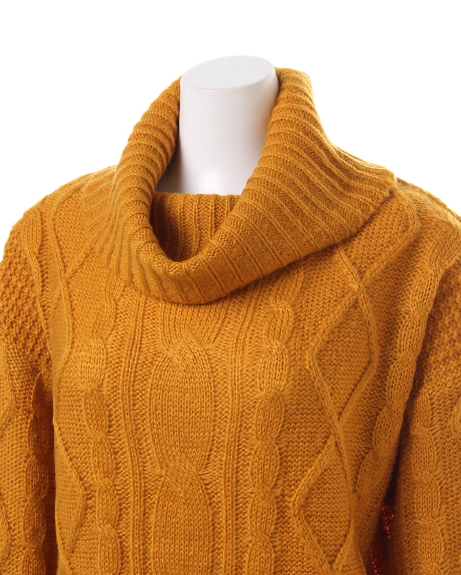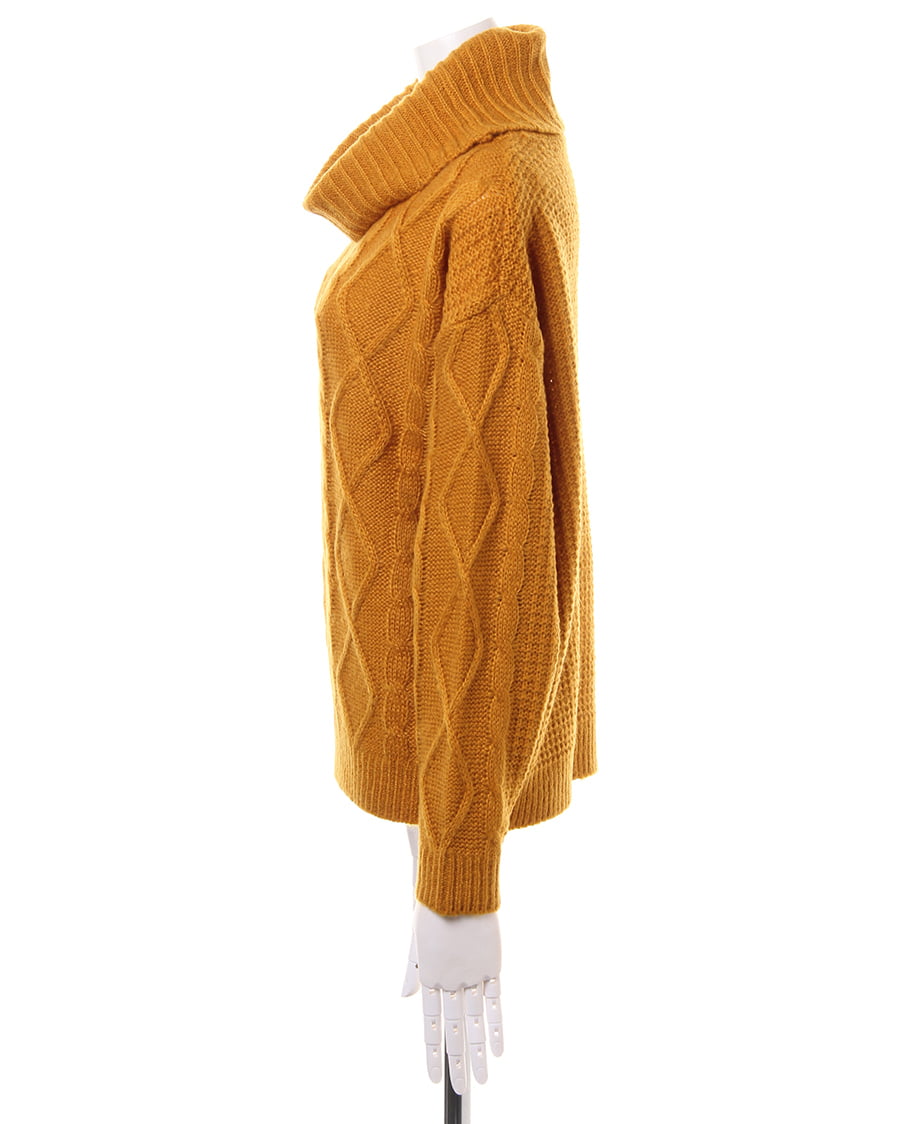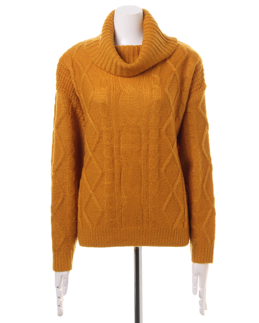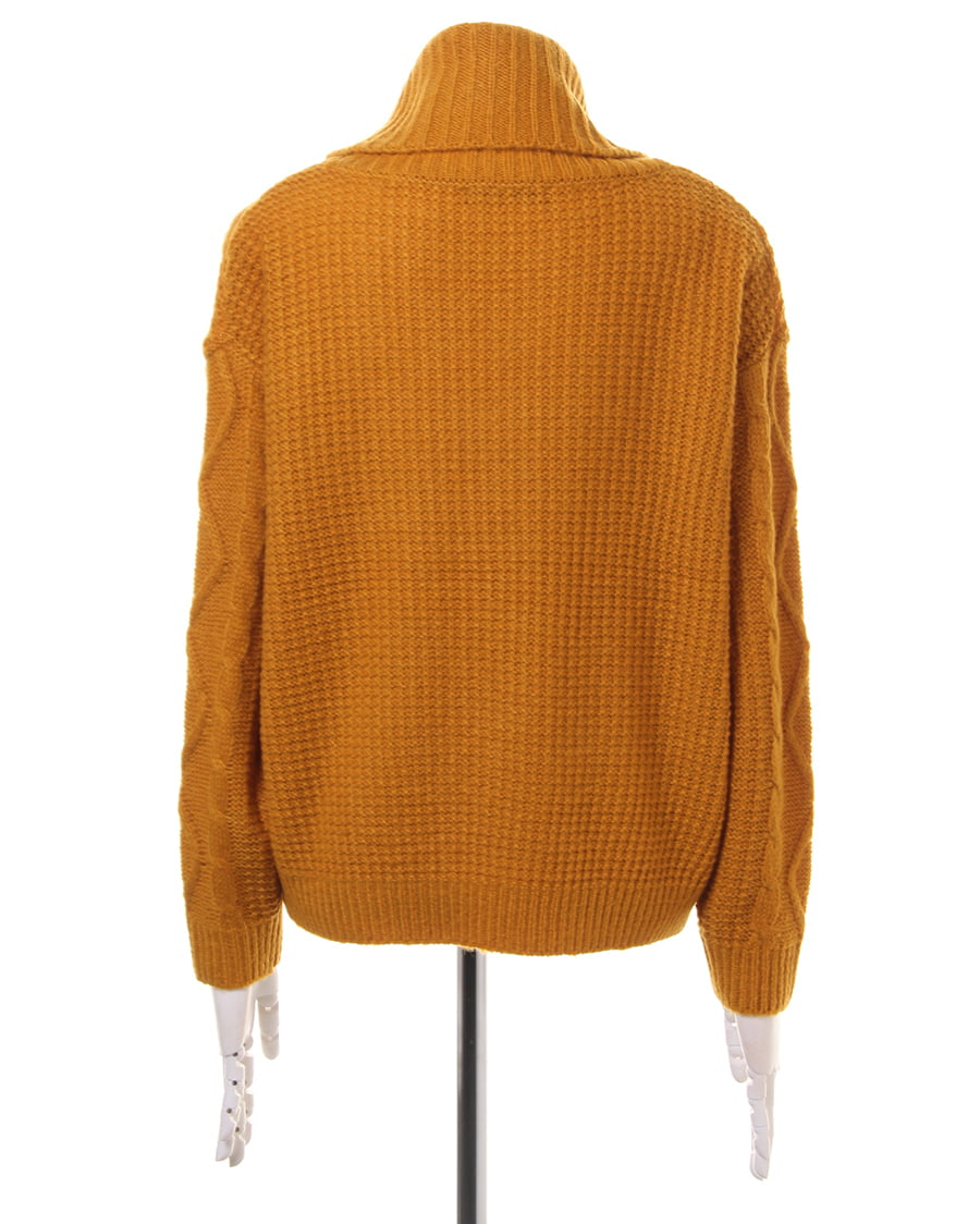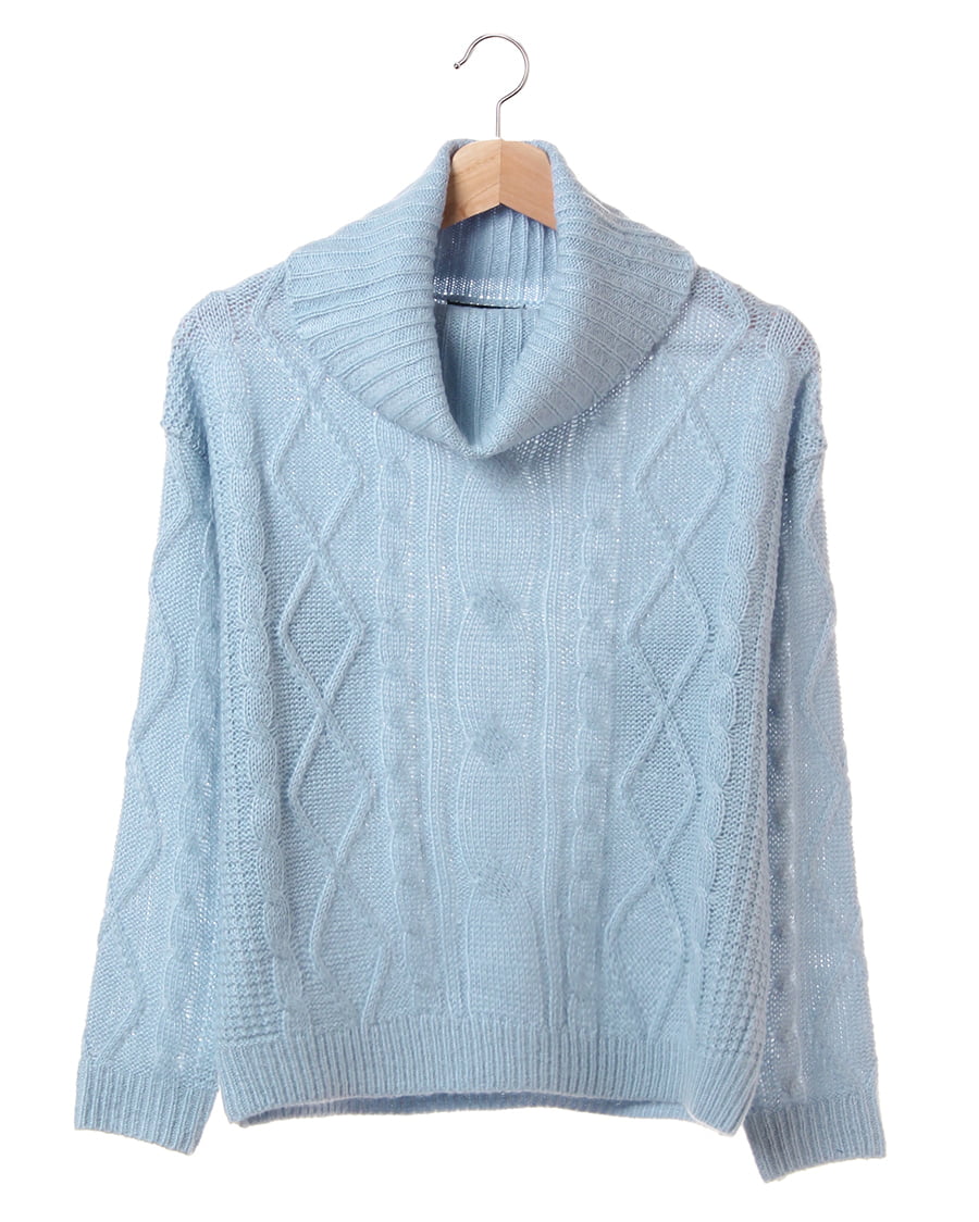 これからの季節のムードメーカー、ケーブルオフタートル。立体的なディテールをメイクするケーブル編みは、厚みを増した生地で防寒性を高める効果も期待できます。ボリュームのあるタートルが、視線を上に集めスタイルアップを叶えます。バックスタイルをすっきりしたことでボリュームを軽減、上品な大人なシルエットを実現します。