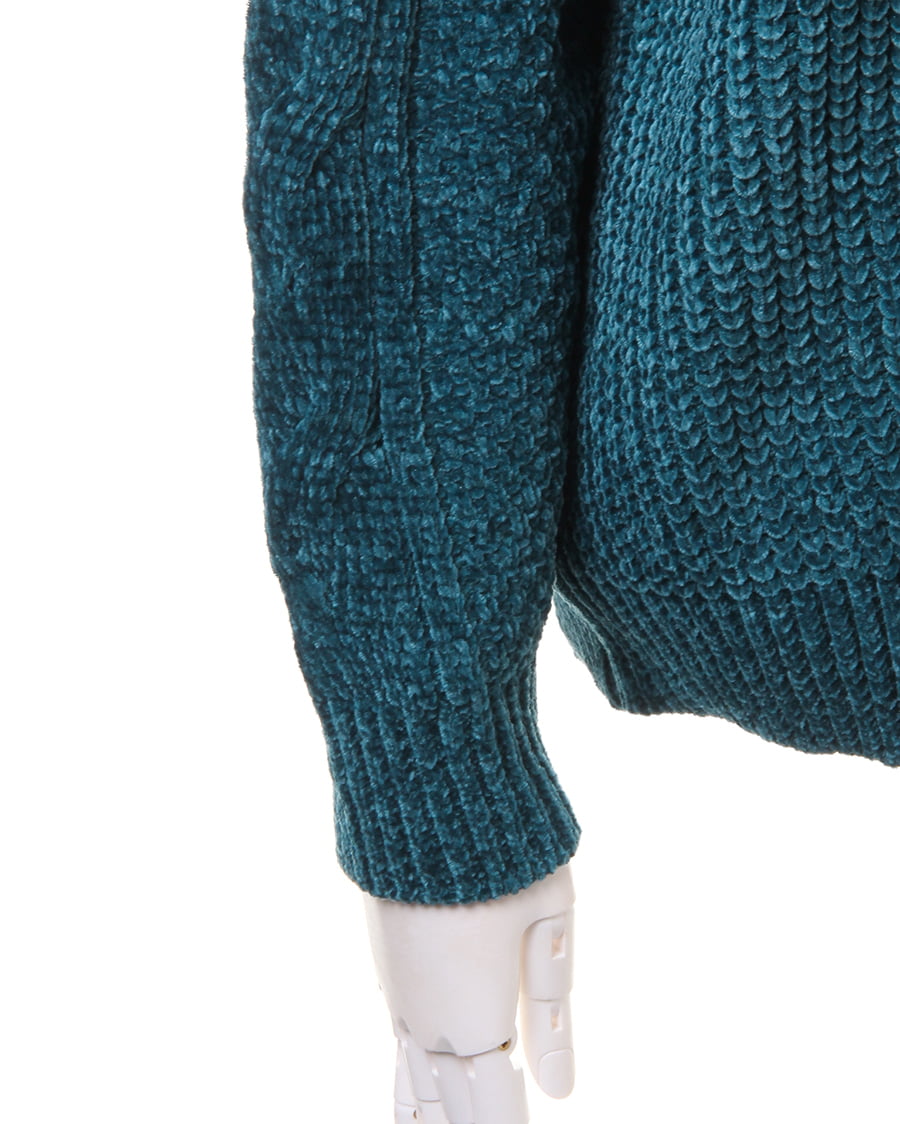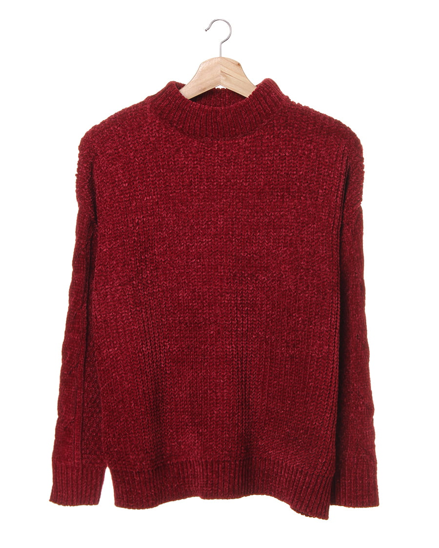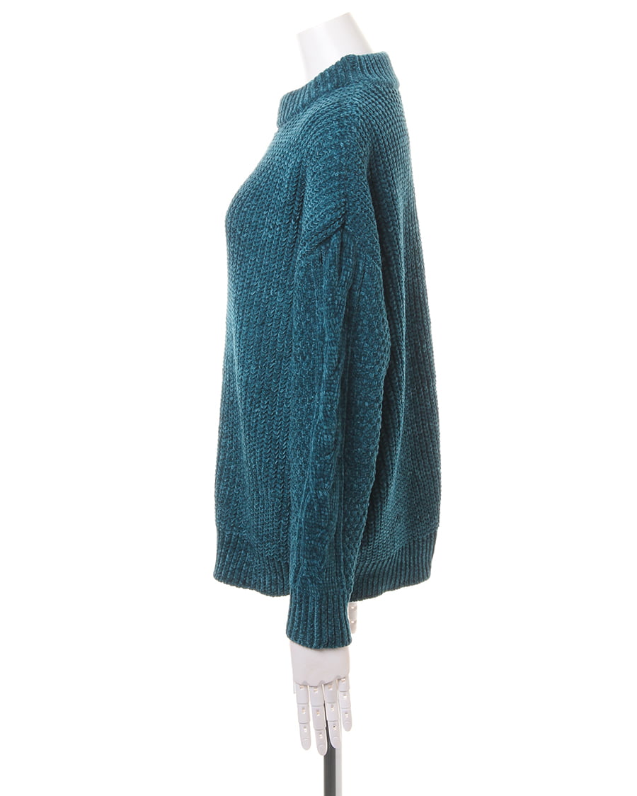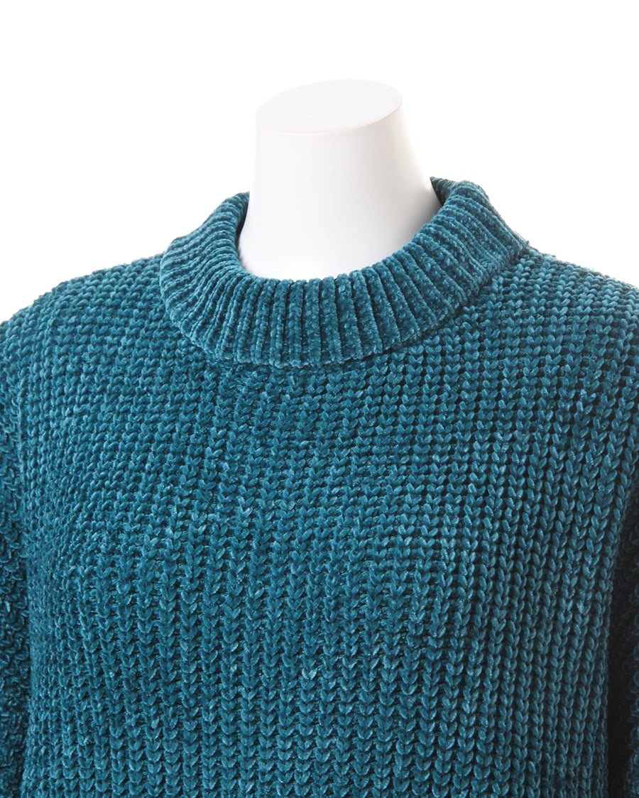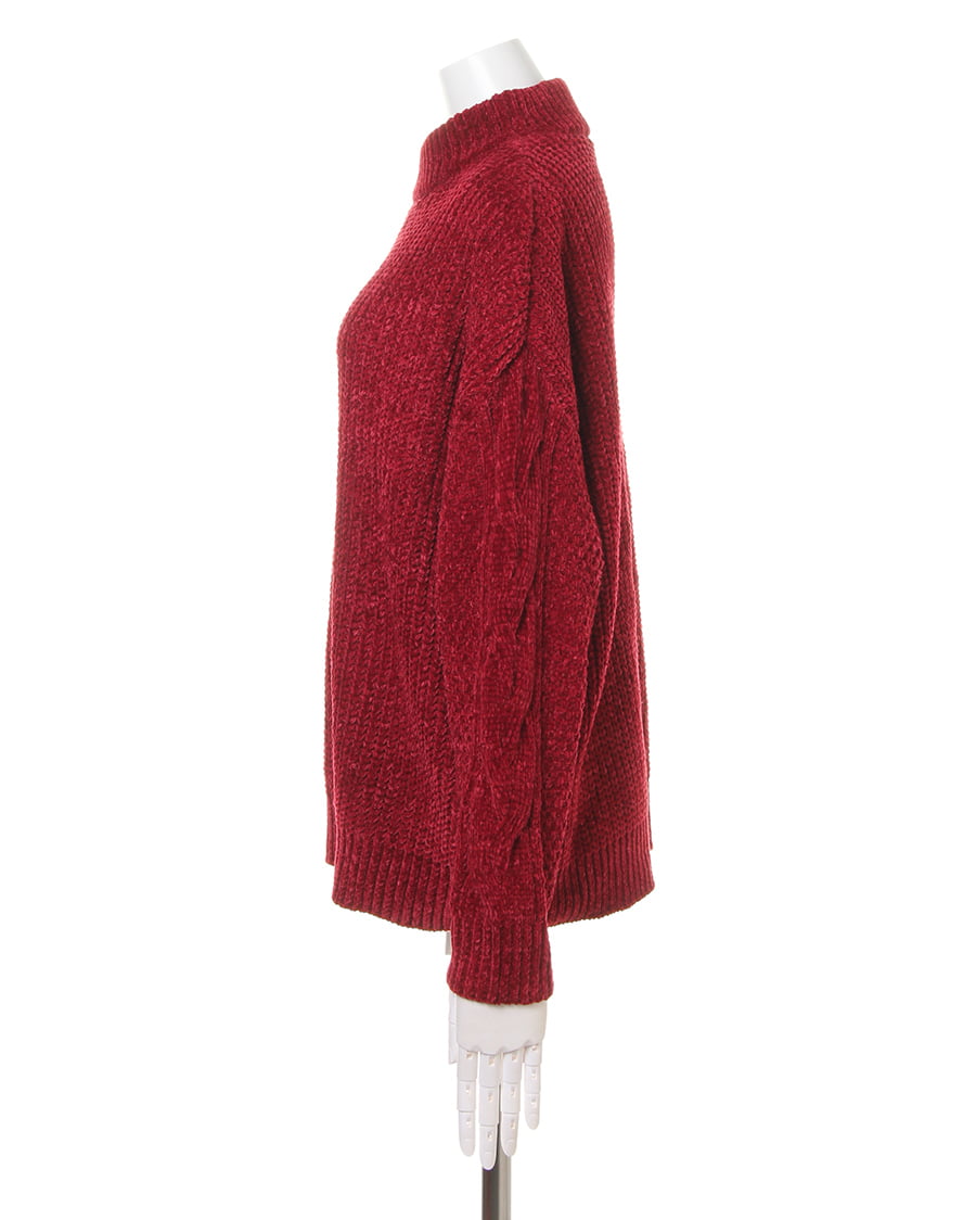 光の当たり方で輝く、ブライトモールで仕立てたニット。素材の風合いを生かしざっくり編まれたニットは、袖のケーブル編みがアクセント。ワンカラーで編み上げているので合わせやすく、スタイリングの幅が広がりデイリー使いに重宝します。ほんのり詰まったネックは、ボリュームのあるボトムスとも好バランスを叶えます。