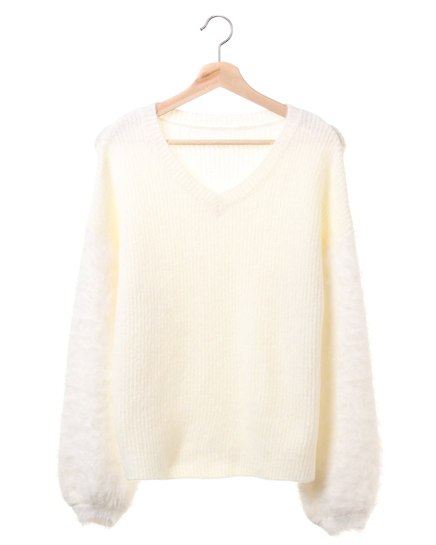 見た目にも暖かなざっくりニットは、袖部分のフェザー使いがアクセント。顔周りをすっきり見せるVネックに、ボリュームのあるスリーブでバランスの取れたシルエットに仕上げています。ドロップショルダーと組み合わせることで、今年らしさを演出。ベーシックなカラーから、コーディネートのアクセントになるカラーまで使いやすいカラーが揃っています。