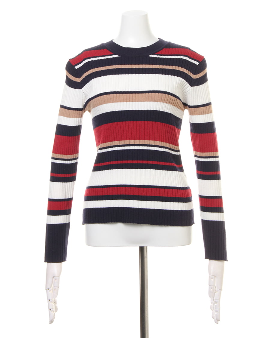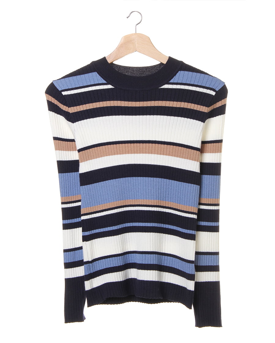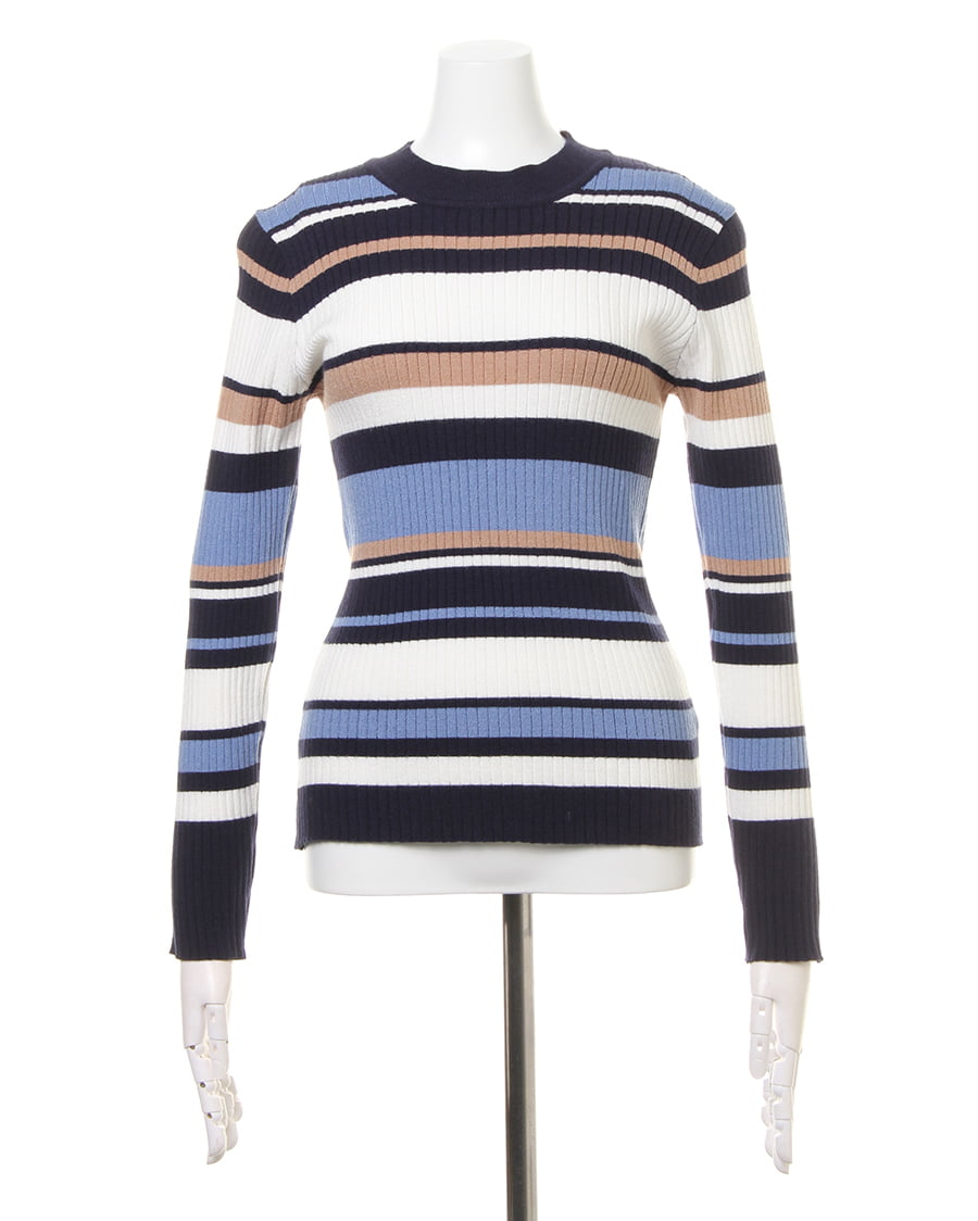 幅の異なるボーダーが印象的なプルオーバー。ボディラインにキレイに沿うシルエットが女性らしい雰囲気を演出。伸縮性が高いので、着心地も抜群です。一枚ではもちろん、アウターのインナーとしても存在感抜群。トレンドのボリュームのあるボトムスや、定番のスキニーまでスタイリングの幅が広がる優秀アイテムです。