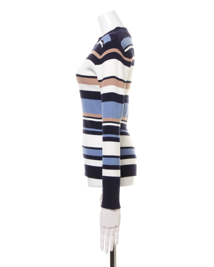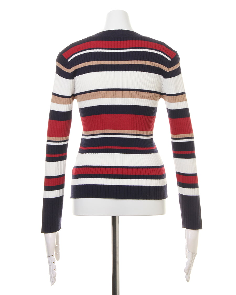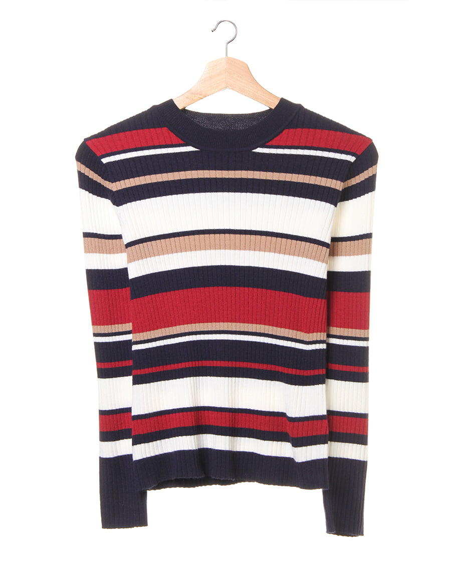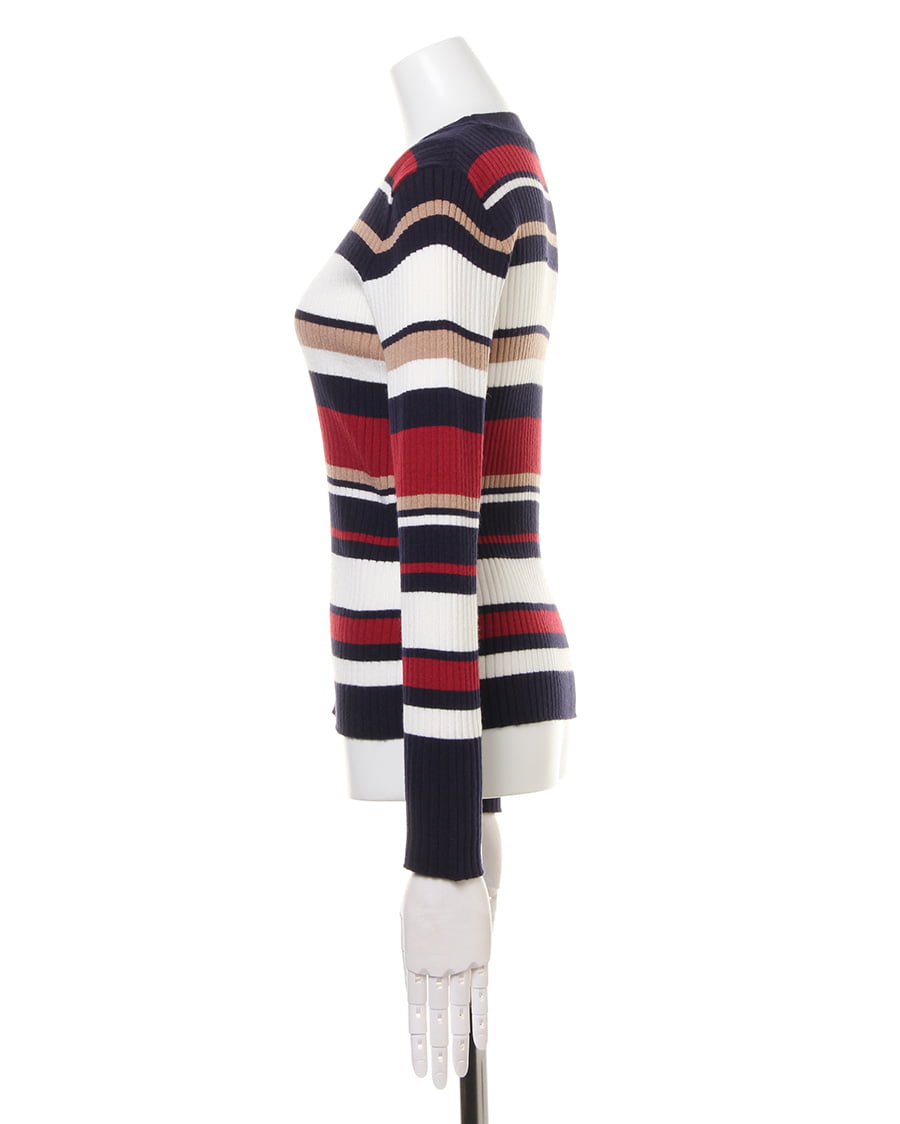 幅の異なるボーダーが印象的なプルオーバー。ボディラインにキレイに沿うシルエットが女性らしい雰囲気を演出。伸縮性が高いので、着心地も抜群です。一枚ではもちろん、アウターのインナーとしても存在感抜群。トレンドのボリュームのあるボトムスや、定番のスキニーまでスタイリングの幅が広がる優秀アイテムです。