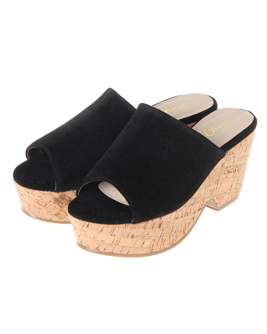 サッと履けるベーシックデザインの厚底シューズは上品な素材使いで大人っぽく。しなやかなフェイクスウェード素材が落ち着いた印象のサンダルです。アッパー部分を広めに取っているので足入れしやすく、ホールド感があるのも◎。8センチヒールも傾斜が少ないので疲れにくくなっています。コルクデザインとの組み合わせが新鮮なアイテムはスタイルを選ばす合わせられます。