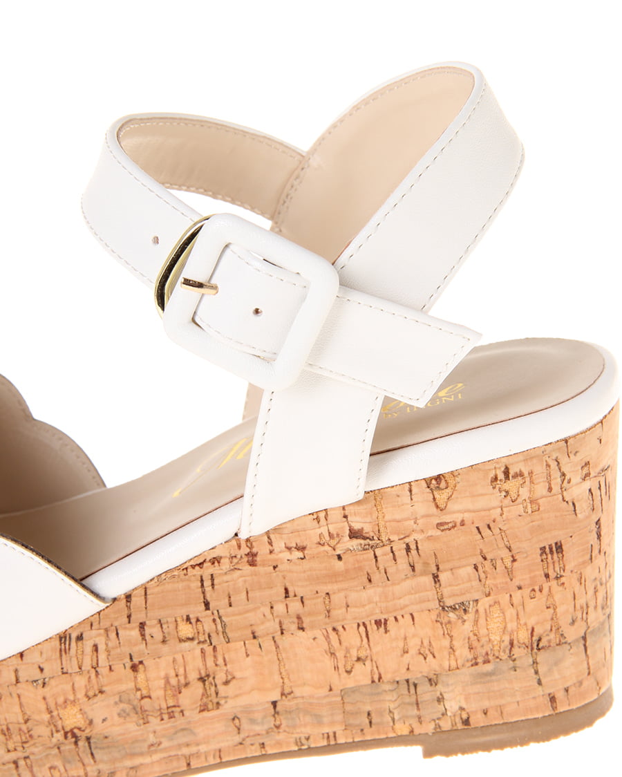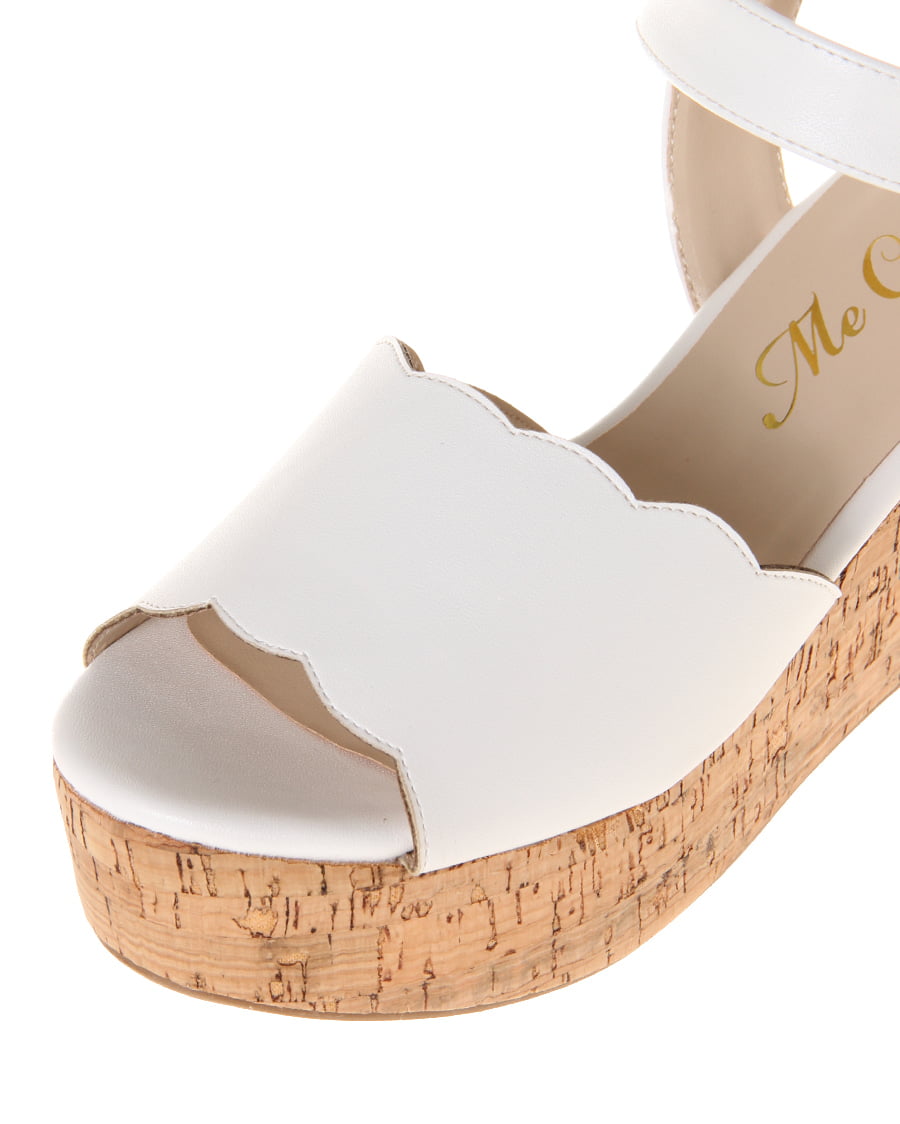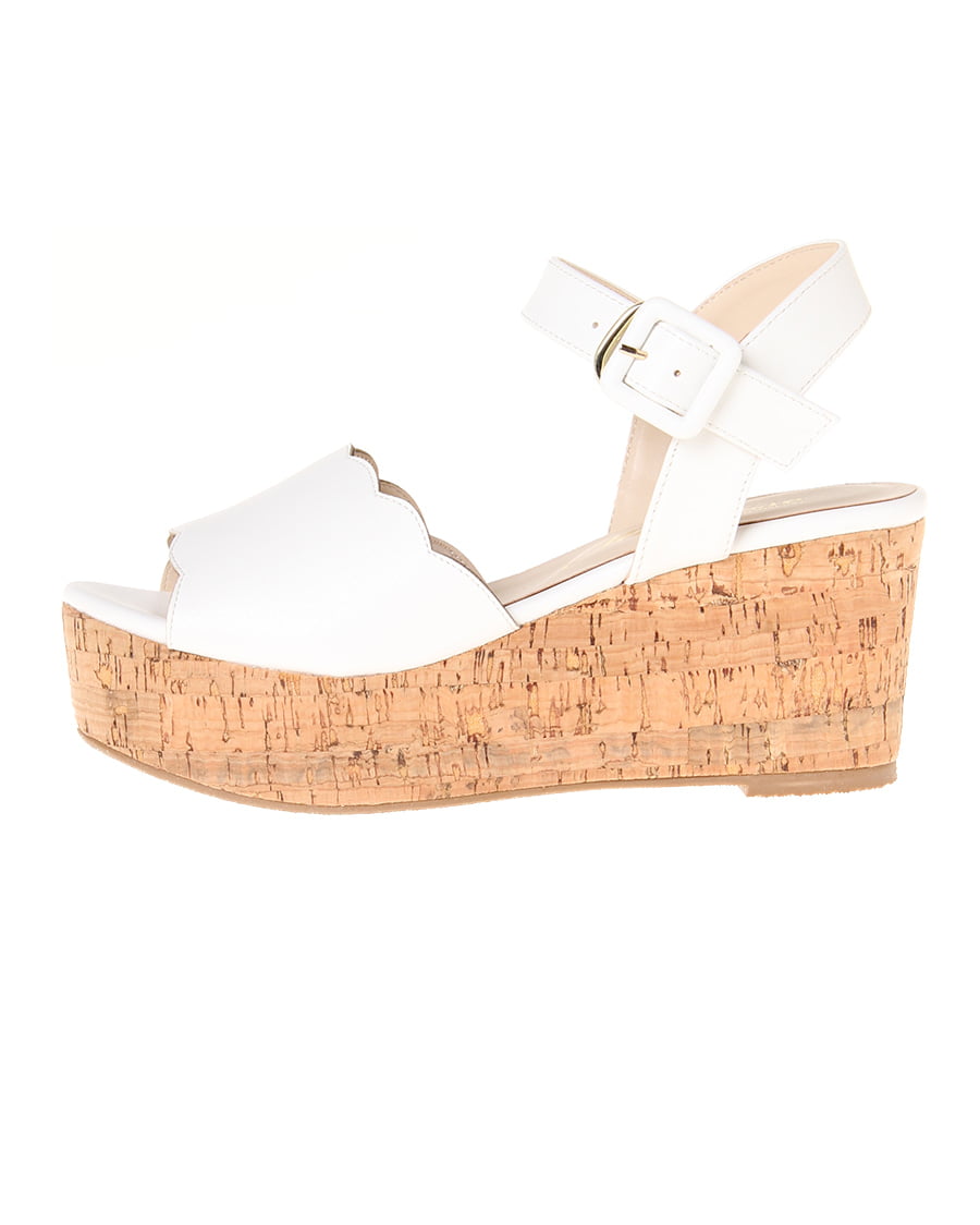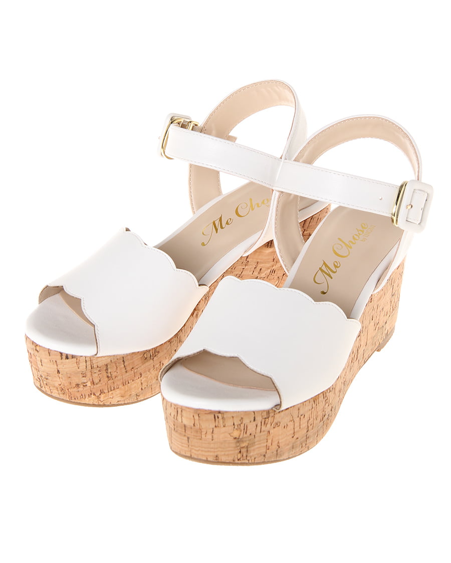 アッパー部分をスカラップデザインでガーリーに仕上げたサンダルは、ボリュームのある今年らしい1足。ホールド感があり疲れにくい太めのストラップが◎。インソールは程よいクッションを入れることで脚にかかる負担を軽減してくれます。高低差の少ないウェッジヒールは、美脚を叶えつつも履き心地の良さを実現。コルクデザインとの組み合わせが季節感をあおります。