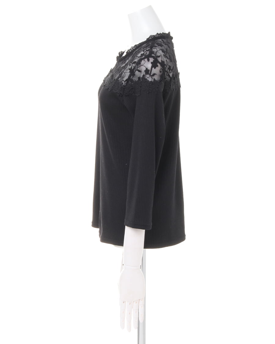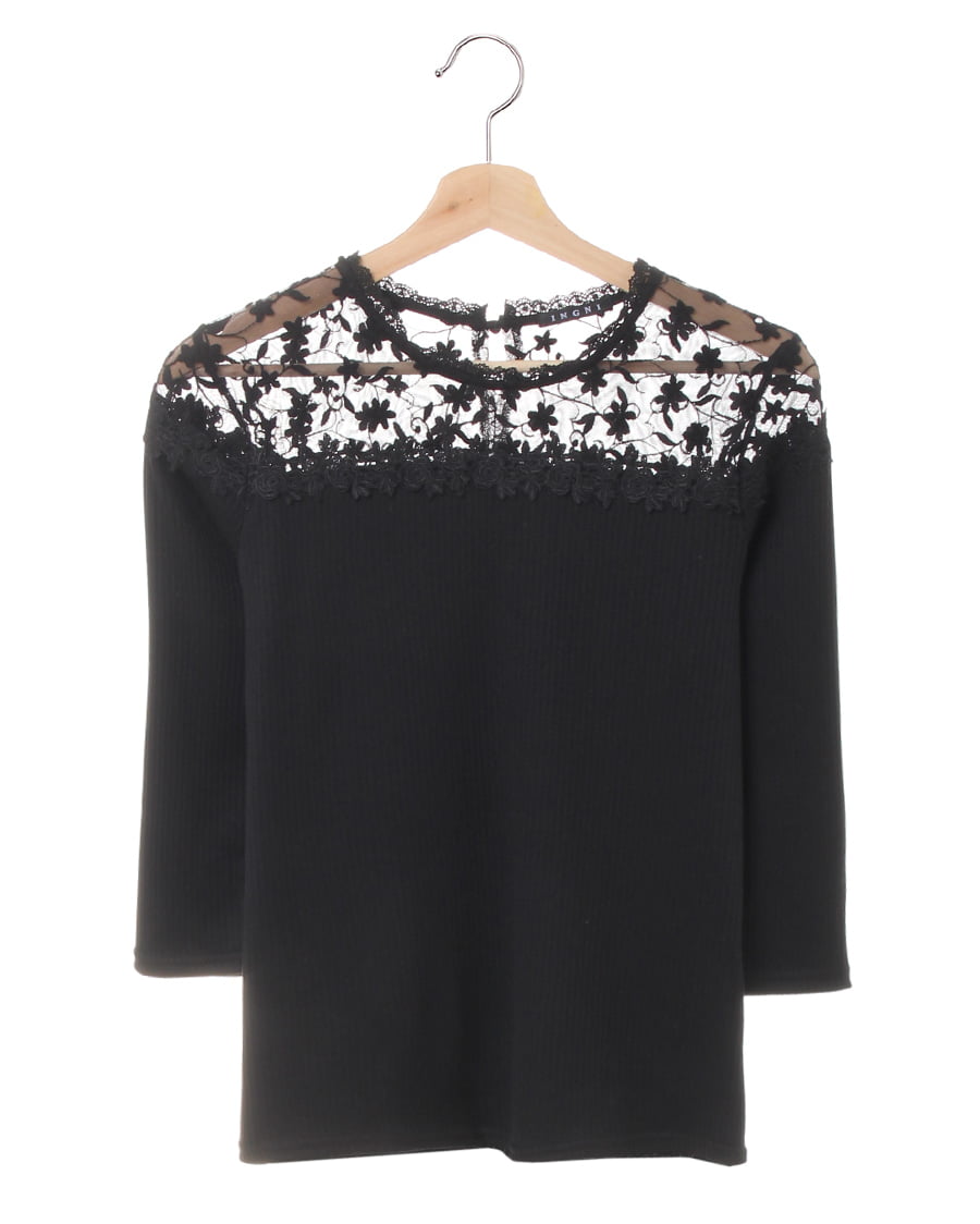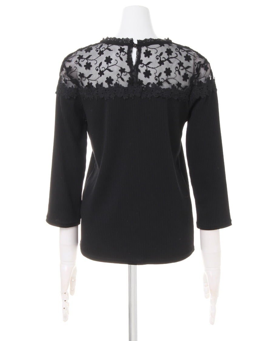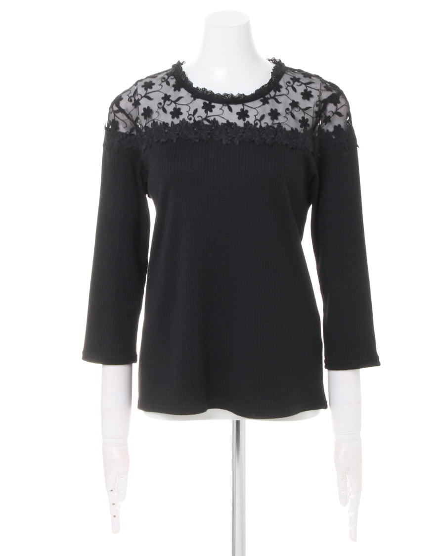 ヨーク部分に花柄刺しゅうを贅沢にあしらったデザインが目を引くフェミニンなトップスは、自然なこなれ感をプラス。肌が透ける上品なレースが顔周りを明るく演出、ボディ部分の細めのリブが上半身をすっきり見せてくれます。伸縮性の高い柔らかな素材は程よいフィット感で着心地も快適。1枚ではもちろん、アウターの中に着ても存在感がありコーデのポイントになります。ワンカラーで仕立てているのでスタイルを選ばず合わせられる主役級の万能アイテムです。