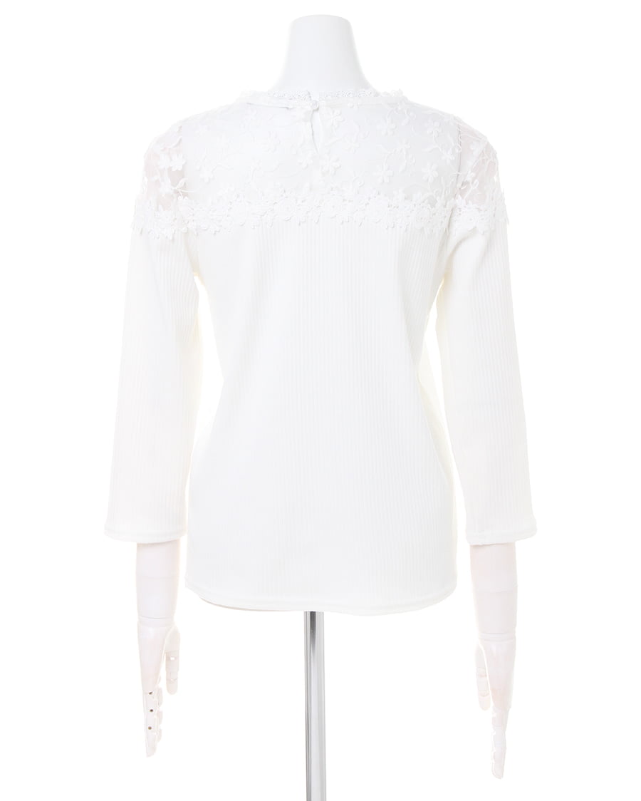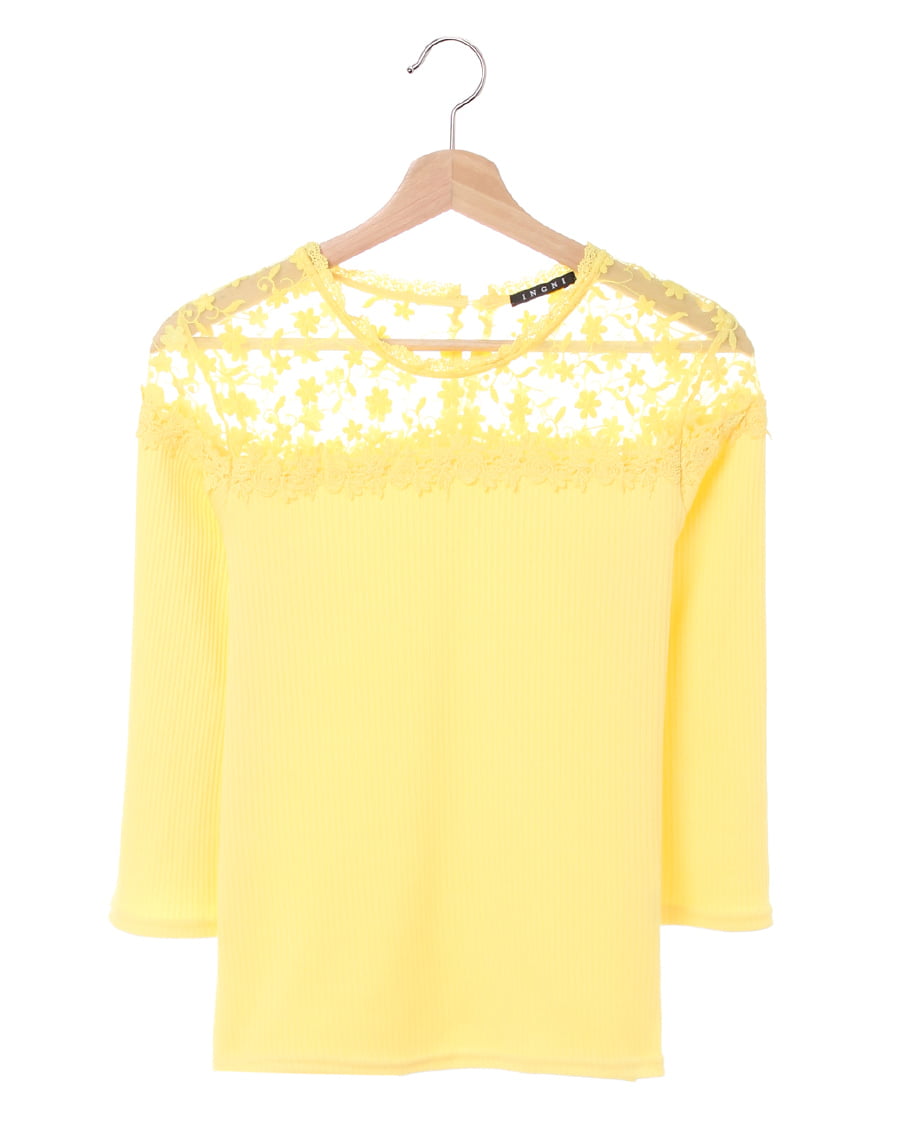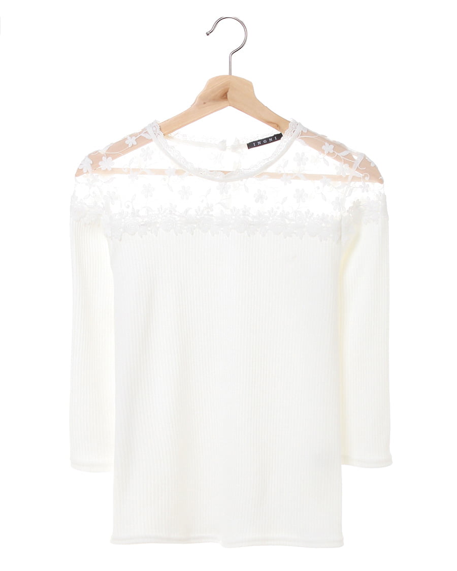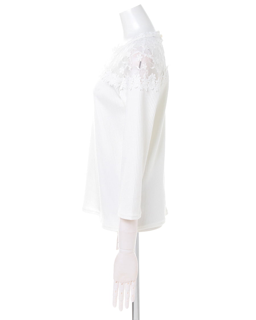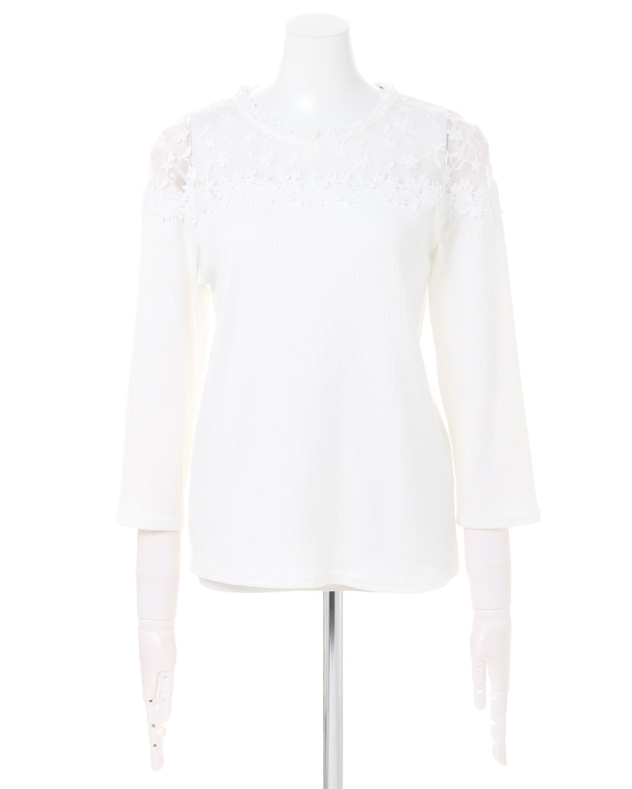 ヨーク部分に花柄刺しゅうを贅沢にあしらったデザインが目を引くフェミニンなトップスは、自然なこなれ感をプラス。肌が透ける上品なレースが顔周りを明るく演出、ボディ部分の細めのリブが上半身をすっきり見せてくれます。伸縮性の高い柔らかな素材は程よいフィット感で着心地も快適。1枚ではもちろん、アウターの中に着ても存在感がありコーデのポイントになります。ワンカラーで仕立てているのでスタイルを選ばず合わせられる主役級の万能アイテムです。