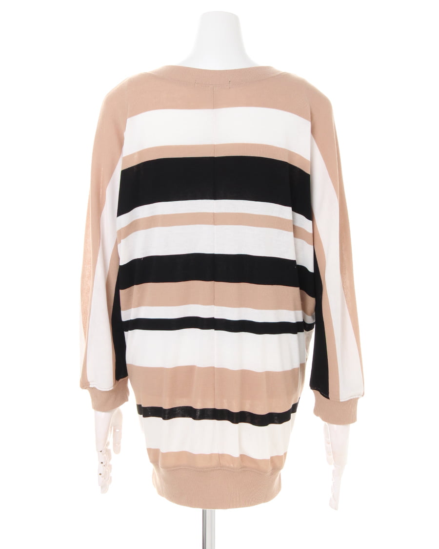 落ち感のあるなめらかな生地で仕立てたゆったりシルエットのトップスです。全体にあしらったランダムボーダーが新鮮。カジュアル過ぎずに着こなせるのでオフィスシーンなどにも◎。薄手なのでインナーを合わせた着こなしもすっきりキマります。ゆったりめの身頃とドロップショルダーが今年らしい1枚。かっちりめのパンツと合わせて大人っぽく着こなすのもおすすめです。