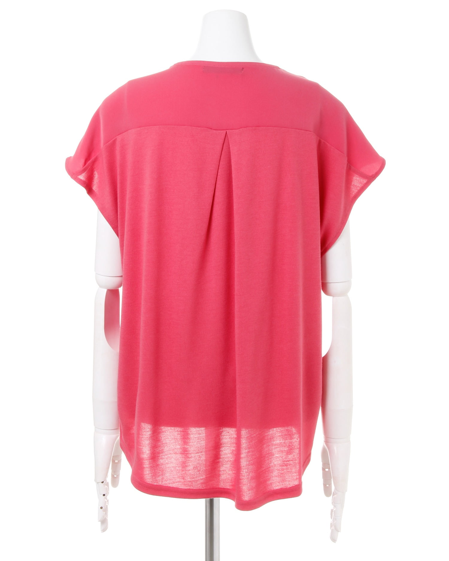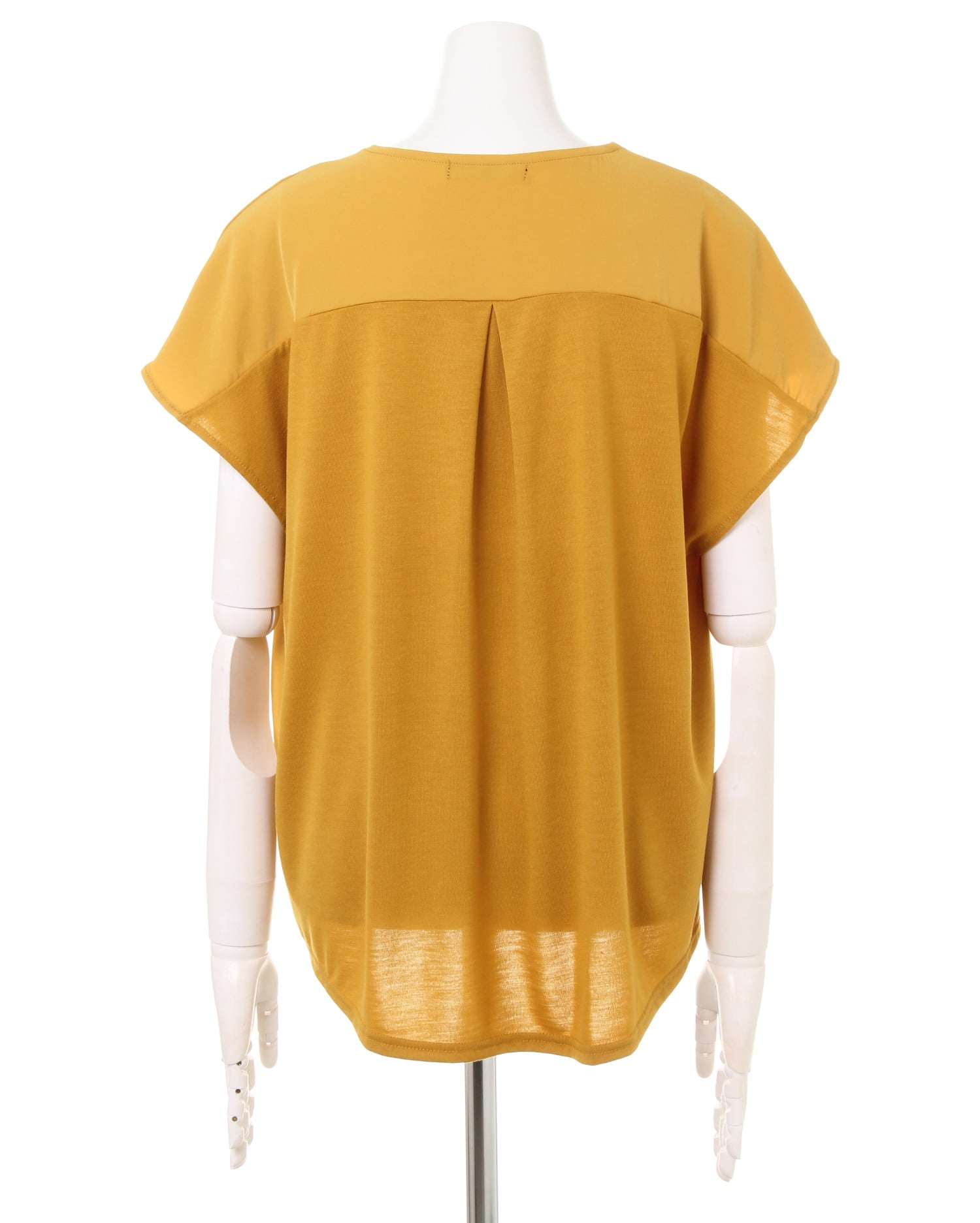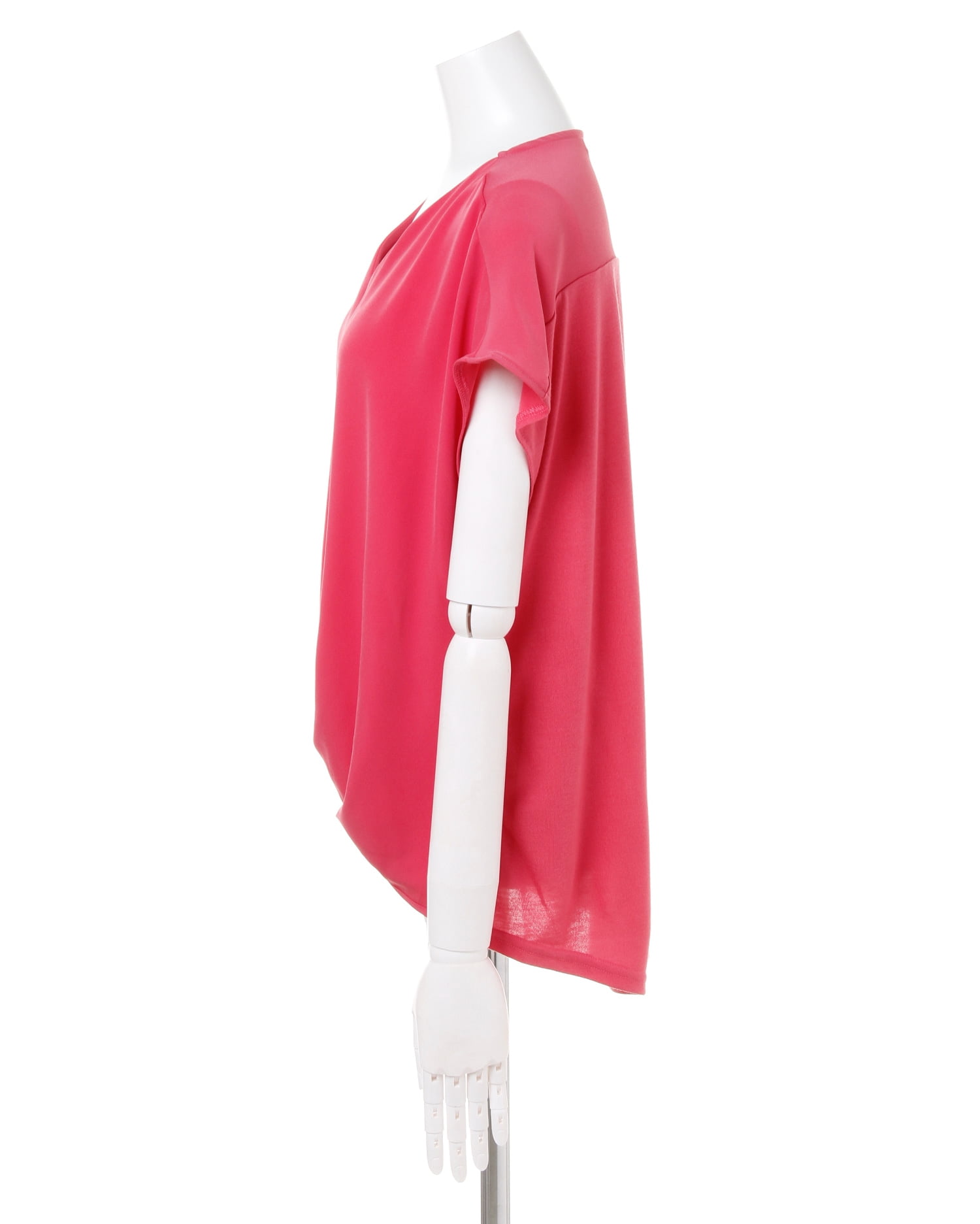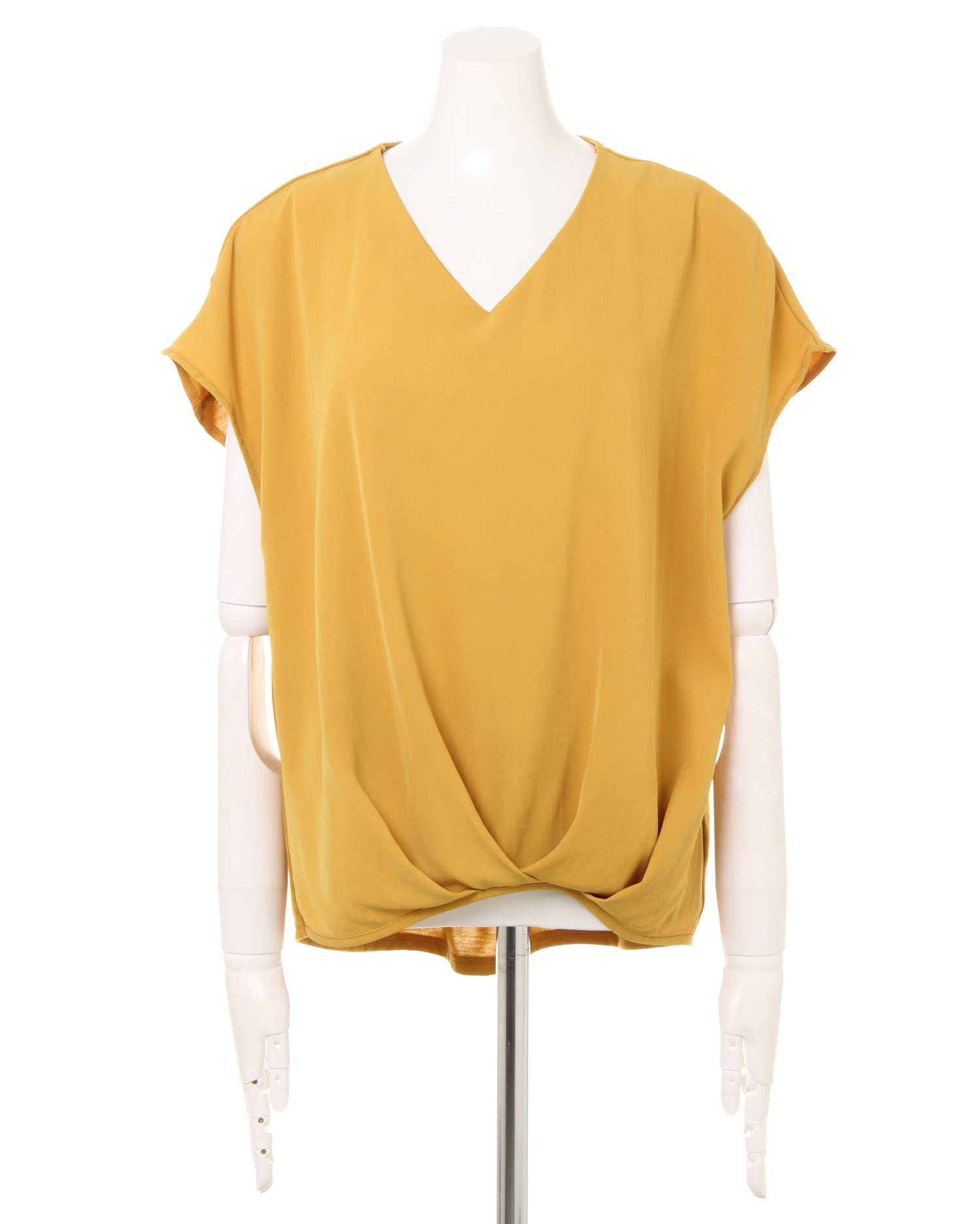 さっと着るだけでタックインスタイル風の着こなしが叶う、フロントのデザインがこなれ感漂うブラウソー。柔らかく肌触りのいいカットソー素材のブラウスはオンオフ問わず着回し力の高い万能アイテム。すっきり開いたVネックがデコルテをきれいに見せ、顔周りを明るく演出します。