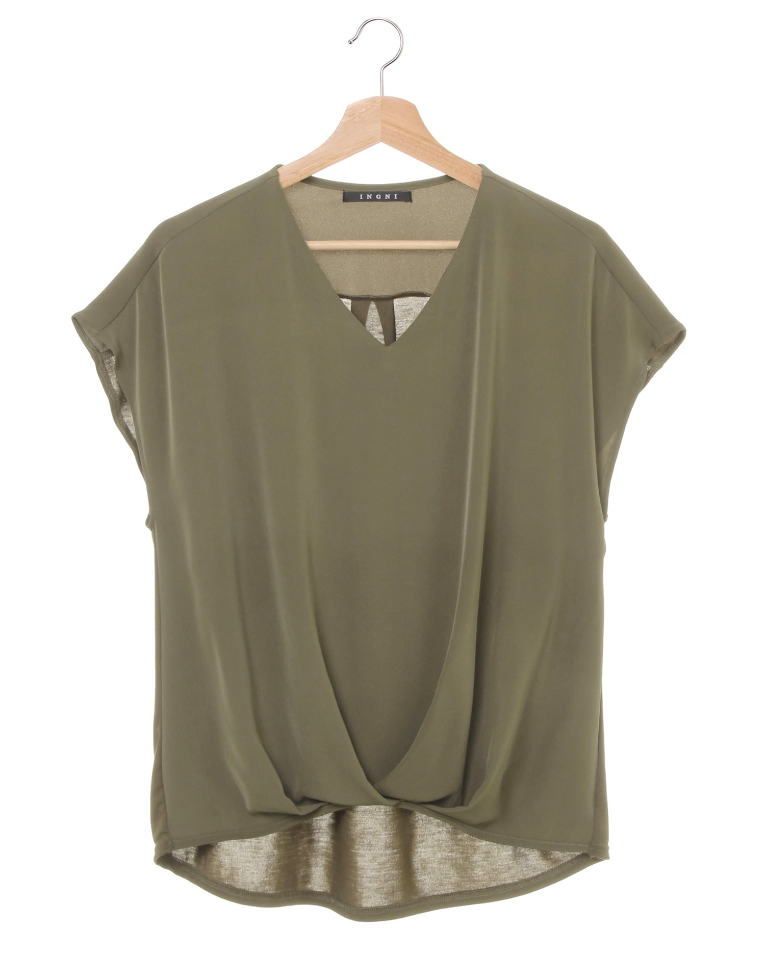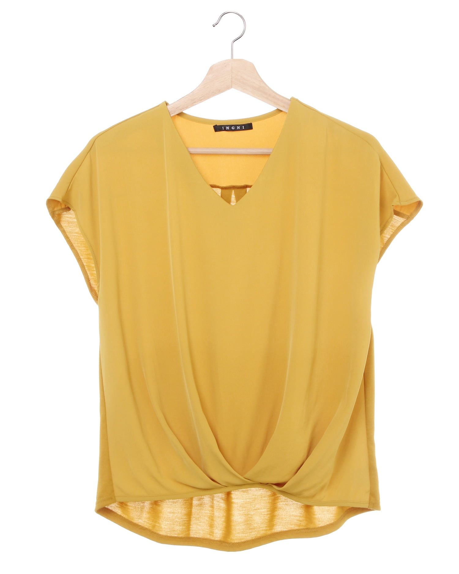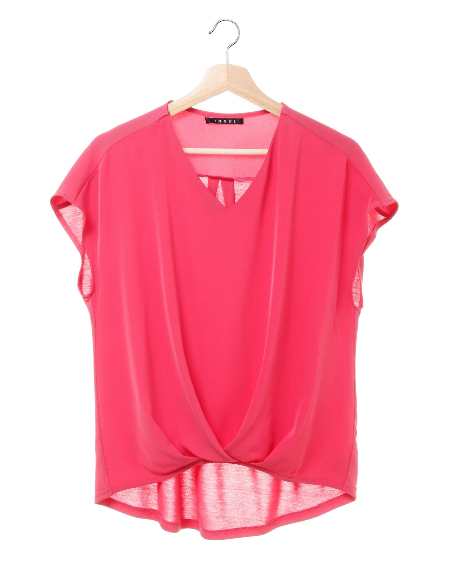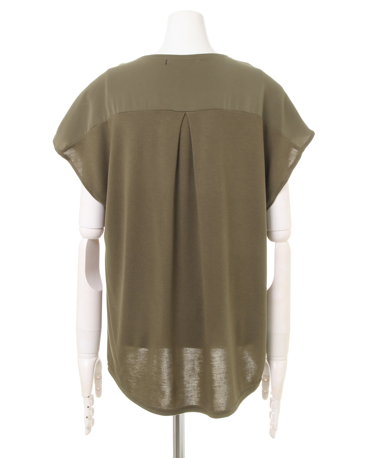 さっと着るだけでタックインスタイル風の着こなしが叶う、フロントのデザインがこなれ感漂うブラウソー。柔らかく肌触りのいいカットソー素材のブラウスはオンオフ問わず着回し力の高い万能アイテム。すっきり開いたVネックがデコルテをきれいに見せ、顔周りを明るく演出します。