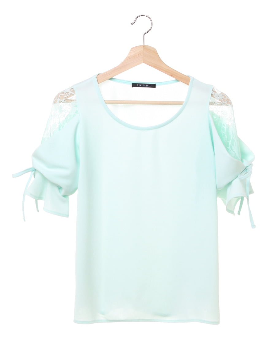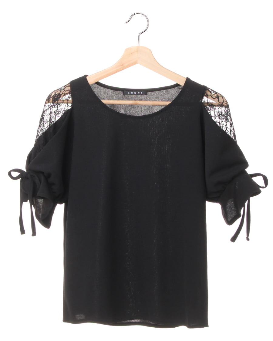 ふんわりとしたスリーブ&流れるようなドレープに、清楚な雰囲気のレースを組み合わせた1枚。同系色のカラーを異素材で変化を付け、大人っぽいデザインに落とし込んでいます。透けの心配もない素材は伸縮性もあり、ゆったりとしたシルエットで着心地も◎。袖部分のレースから透ける素肌がエレガントです。オンオフ問わずに着まわせるのもポイント。
