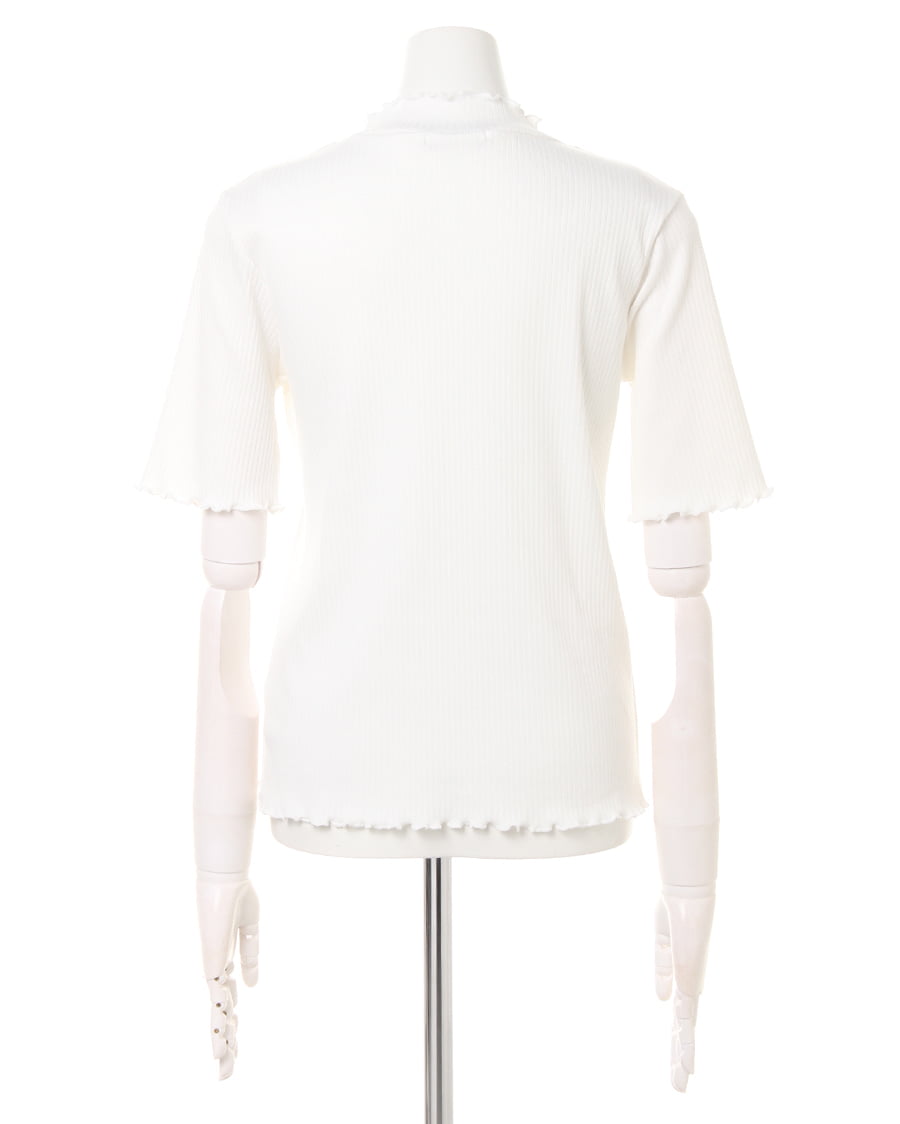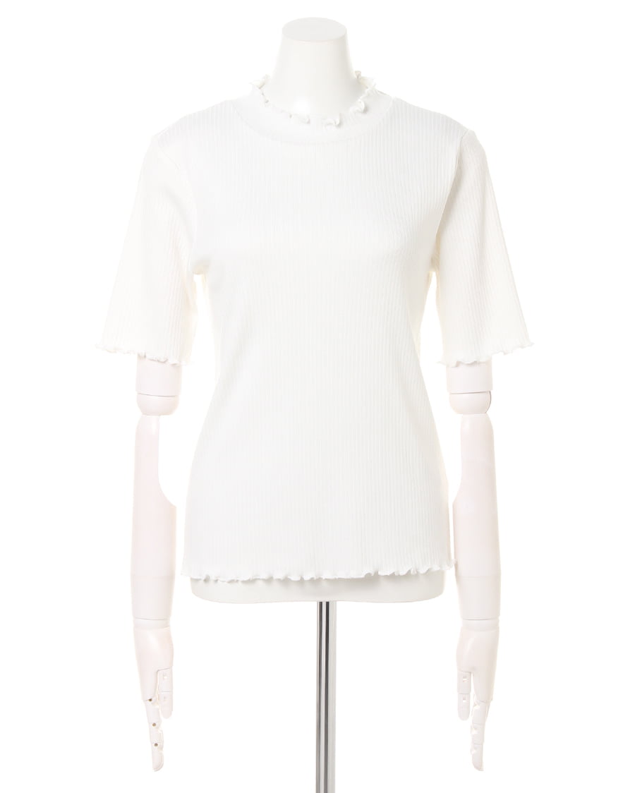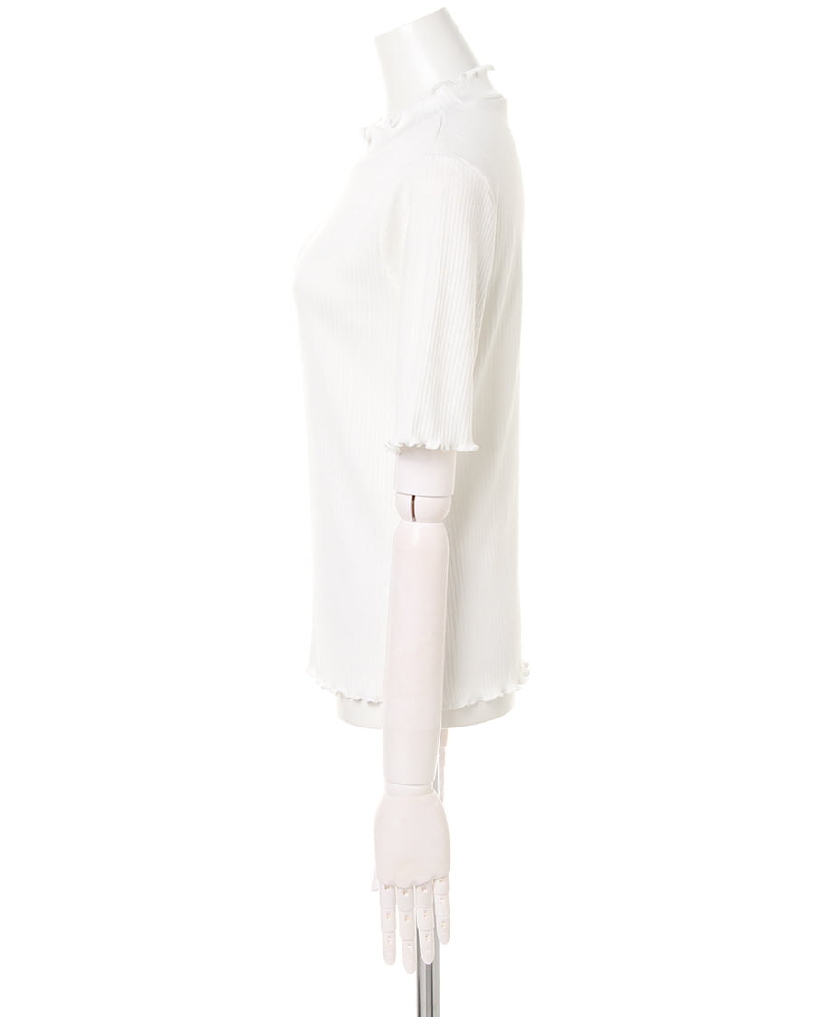 ネックラインと袖口に施されたフリル使いがトレンドライクなトップス。ボディラインにきれいにフィットする柔らかなリブ素材が、着心地の良さを実現、スタイルアップを叶えます。1枚ではもちろん、レイヤードスタイルにも重宝する万能アイテムです。シンプルベーシックなデザインは、様々なボトムスとも相性◎。単色使いでコーディネイトに困らないのも魅力的です。