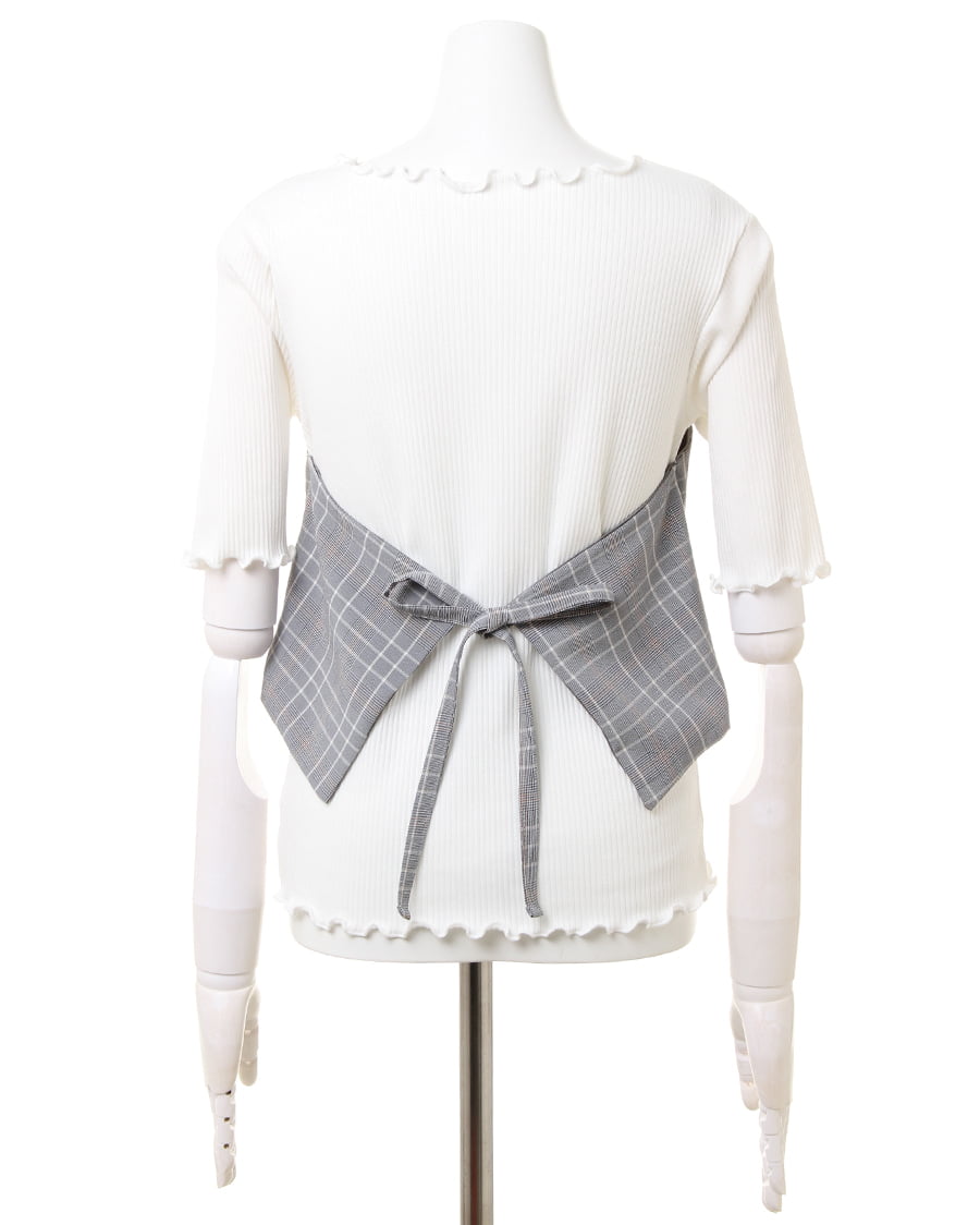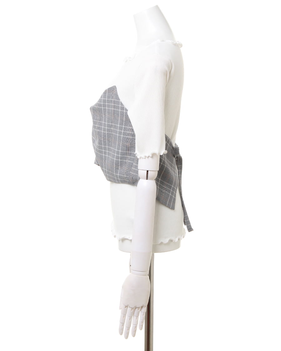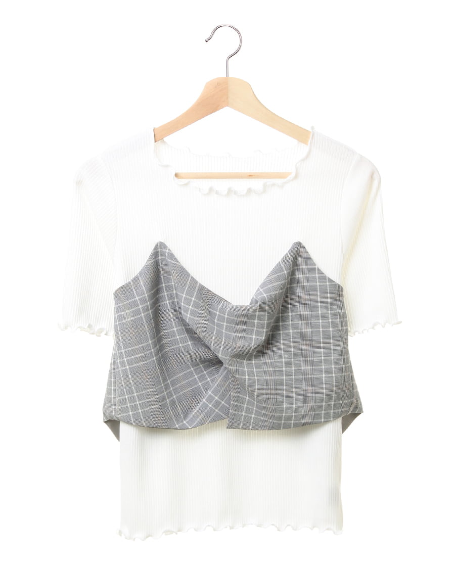 注目のレイヤード風のスタイルが1枚で叶うビスチェトップス。細いリブが上品な印象のメロウトップスは、柔らかく伸縮性も抜群、ボディラインにフィットし女性らしい雰囲気をあおります。ハリのある素材のビスチェがドッキングされているので気崩れも軽減、コンパクトな丈感はどんなボトムスとも◎。着るだけで旬のコーデが完成します。