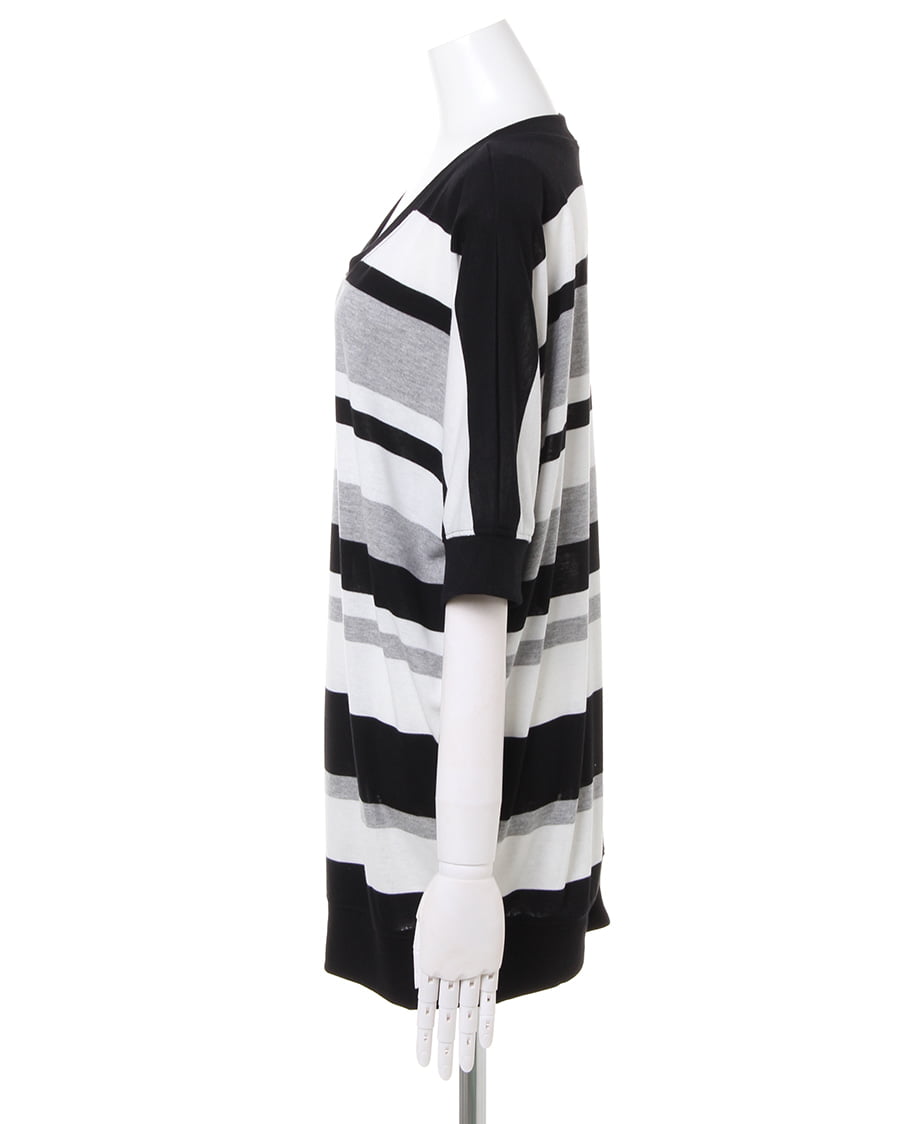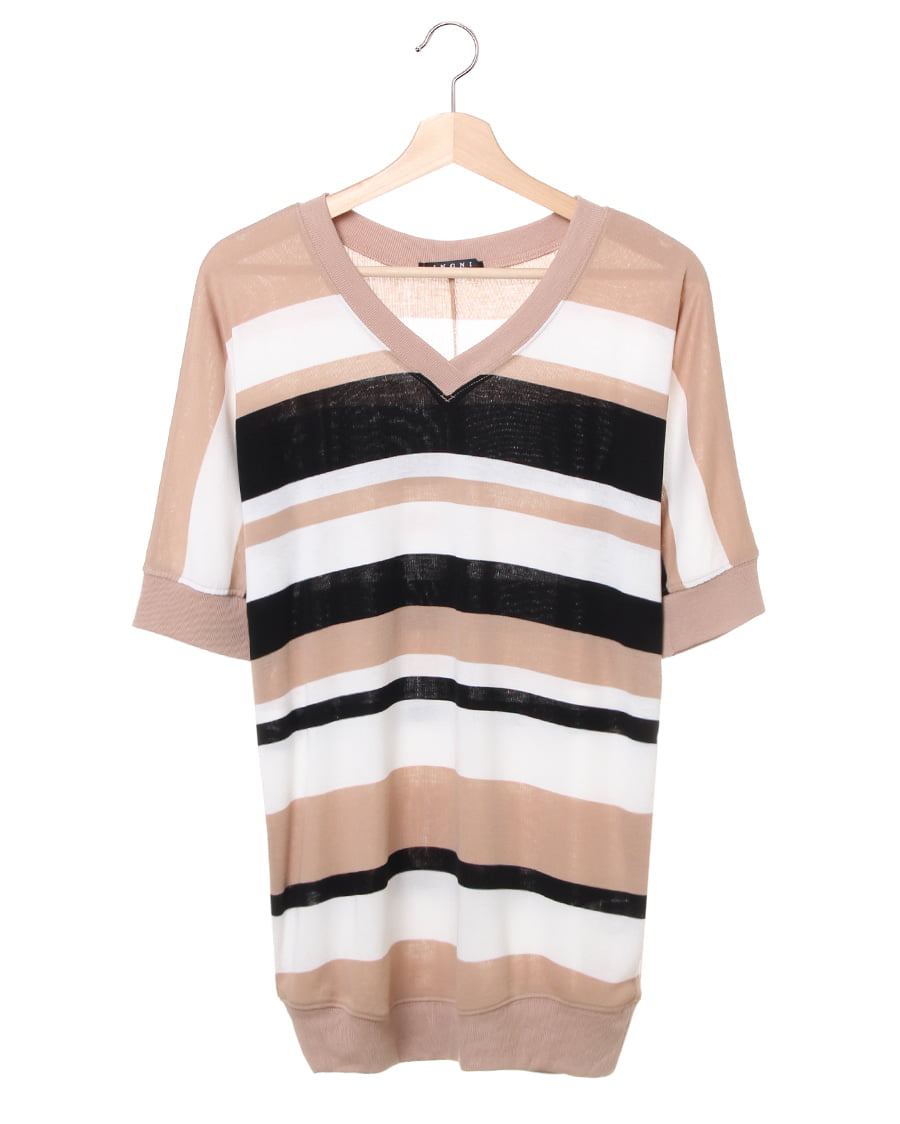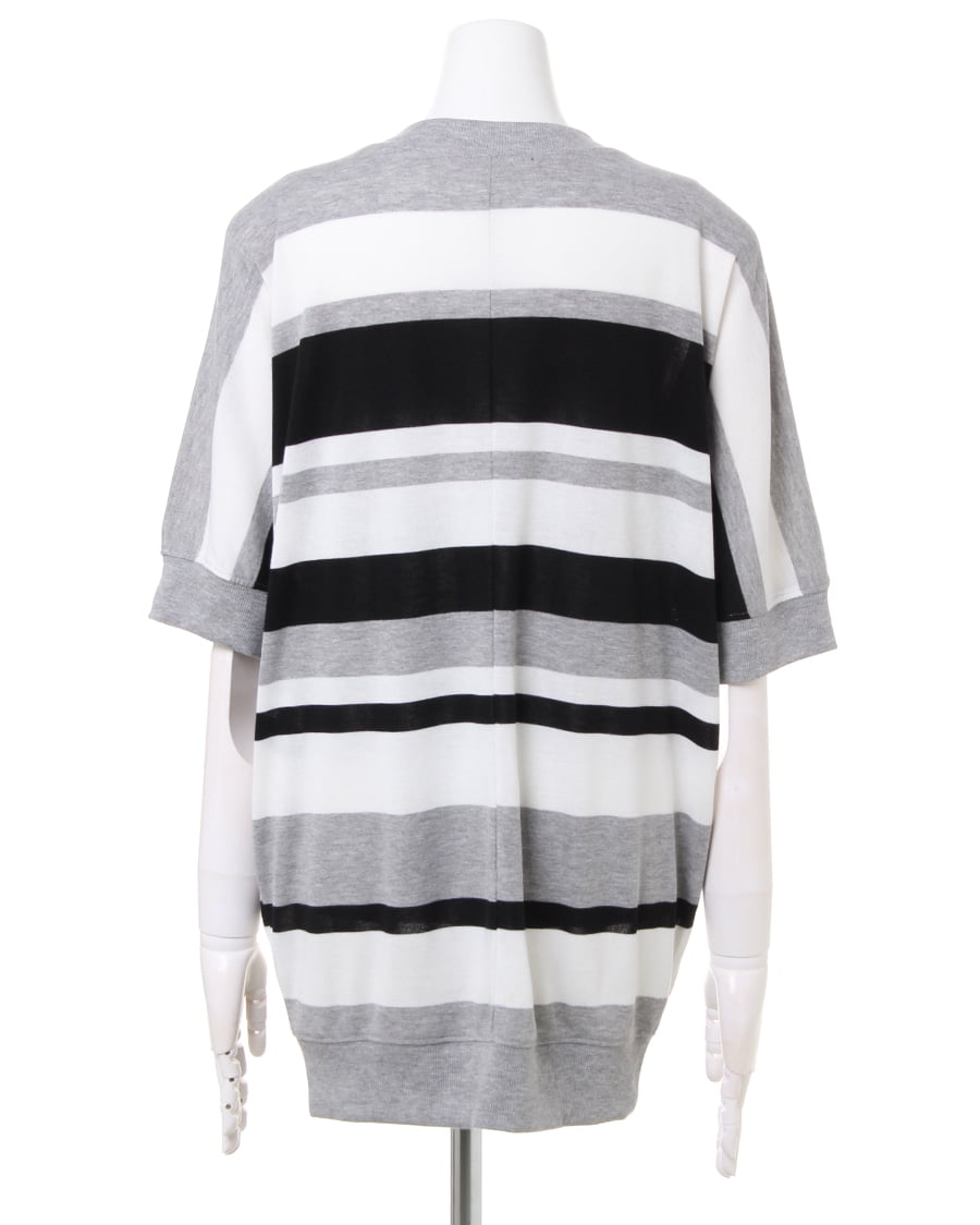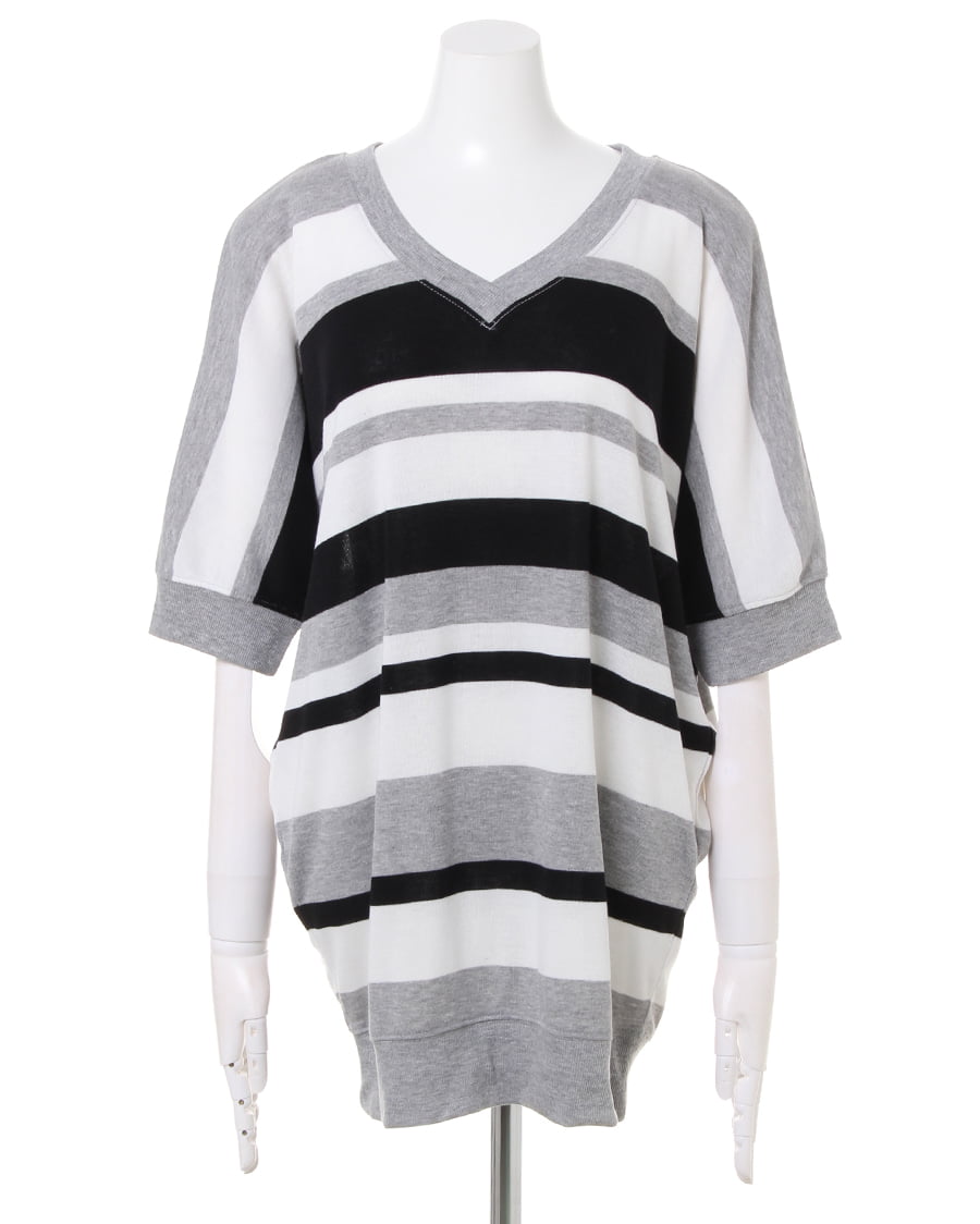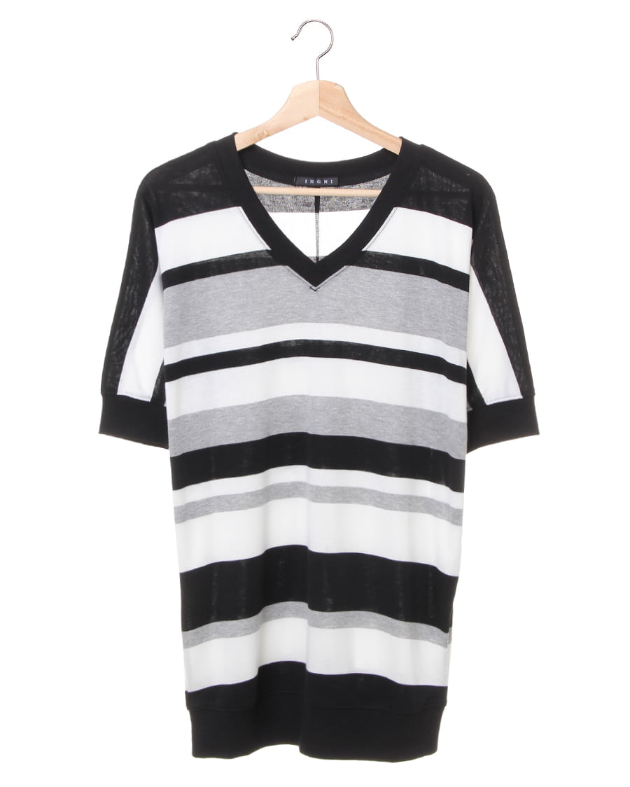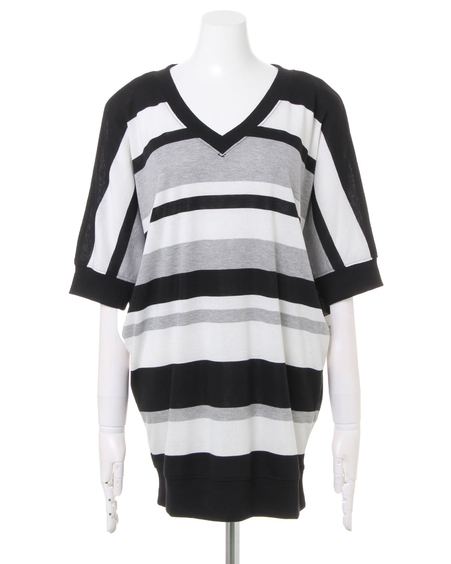 落ち感のある滑らかな生地で仕立てたゆったりシルエットのトップスです。全体にあしらったランダムボーダーが新鮮。カジュアル過ぎずに着こなせるのでオフィスシーンなどにも◎。薄手で涼しげなゆったりめの身頃がこれからの季節、デイリー使いに重宝します。かっちりめのパンツと合わせて大人っぽく着こなすのもおすすめです。
