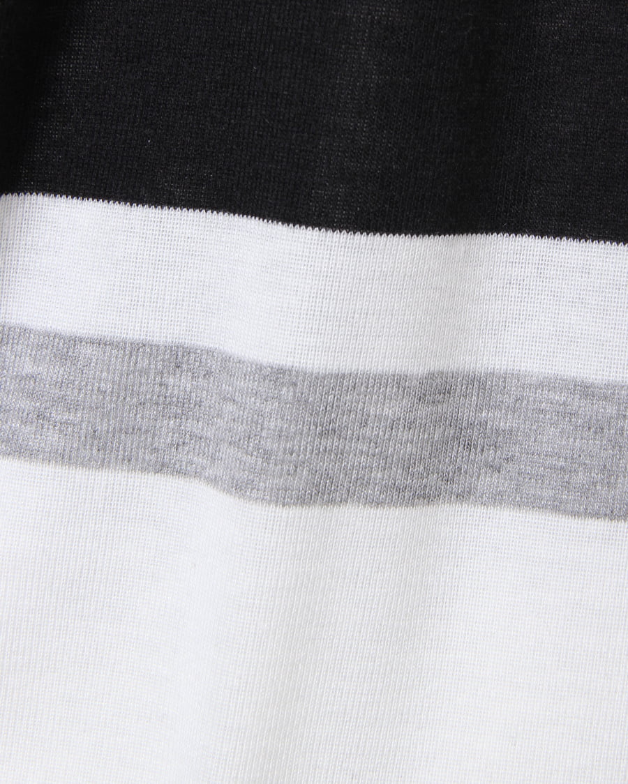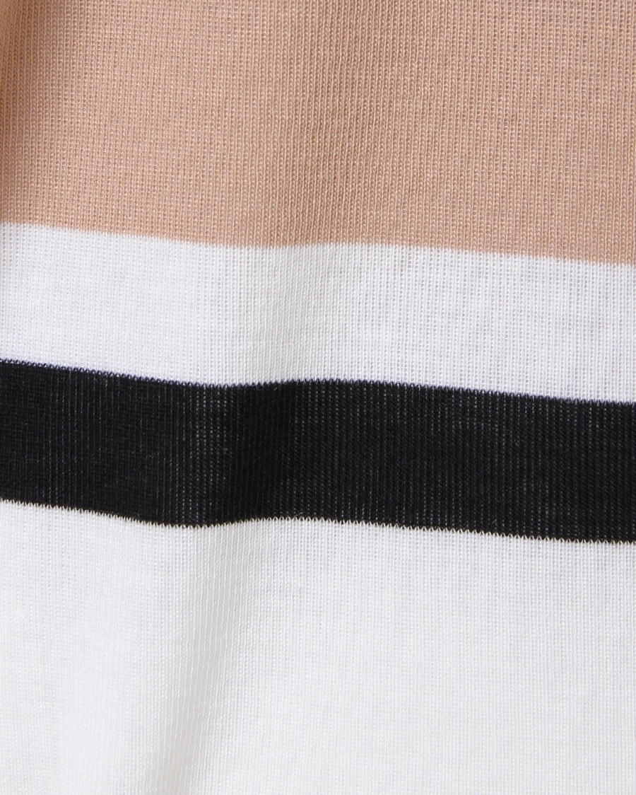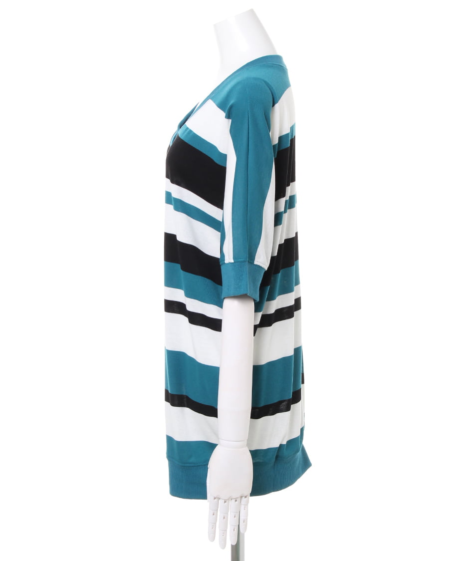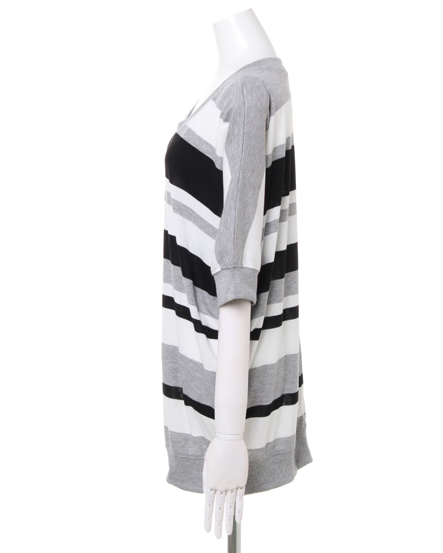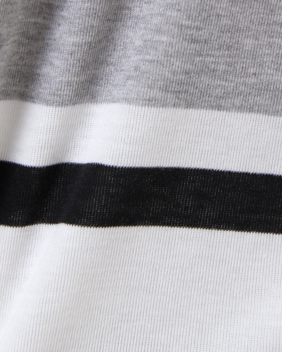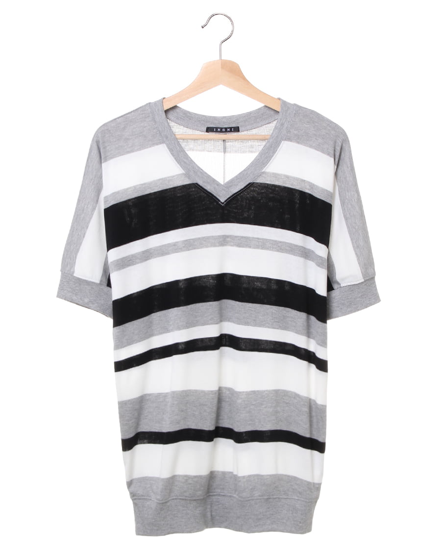 落ち感のある滑らかな生地で仕立てたゆったりシルエットのトップスです。全体にあしらったランダムボーダーが新鮮。カジュアル過ぎずに着こなせるのでオフィスシーンなどにも◎。薄手で涼しげなゆったりめの身頃がこれからの季節、デイリー使いに重宝します。かっちりめのパンツと合わせて大人っぽく着こなすのもおすすめです。