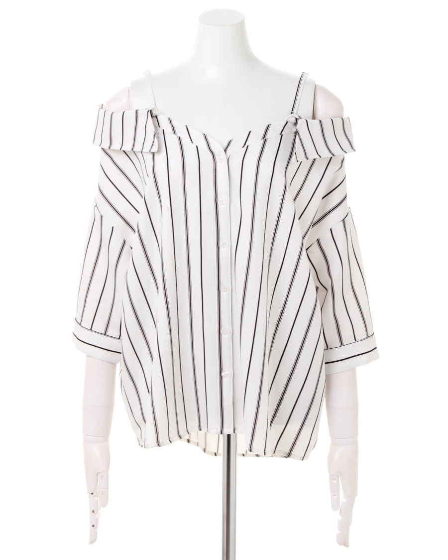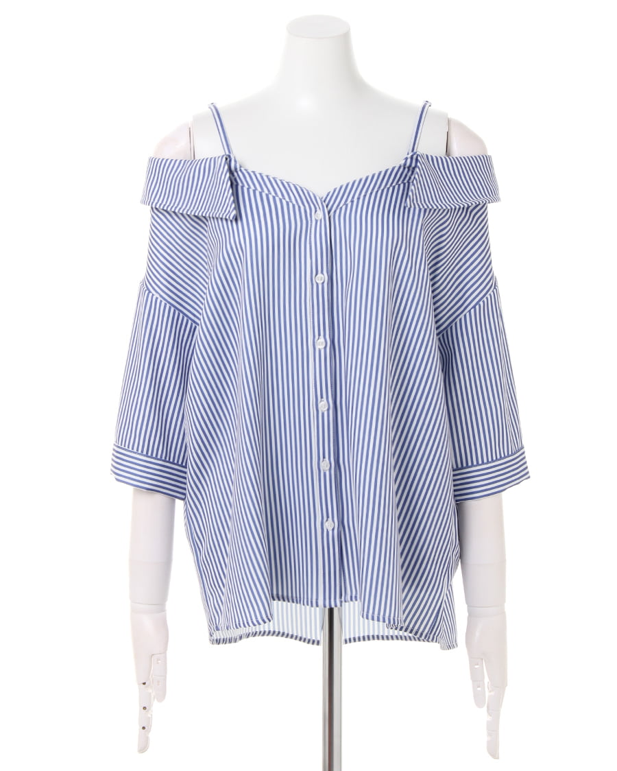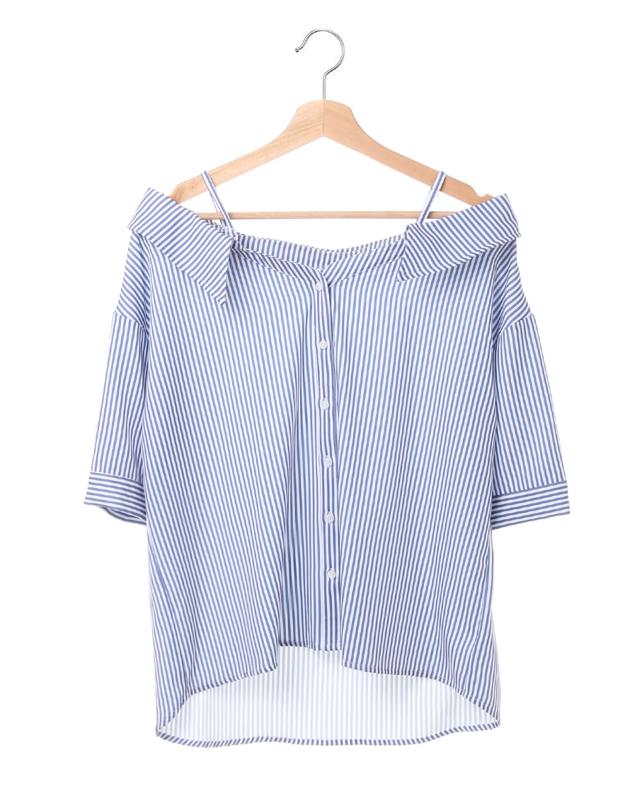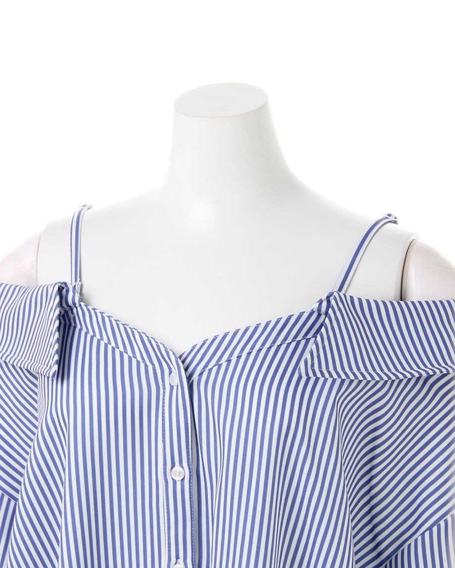 軽くて柔らかいシャツにオフショルデザインを落とし込んだトレンド感高めの1枚。きちんとした印象のシャツをキャミ風にアレンジしたデザインがエレガントな雰囲気。ヘルシーな肌見せが叶います。着崩れを気にせず着られる紐付きです。肩紐は調整も、取り外しができるのも魅力的。