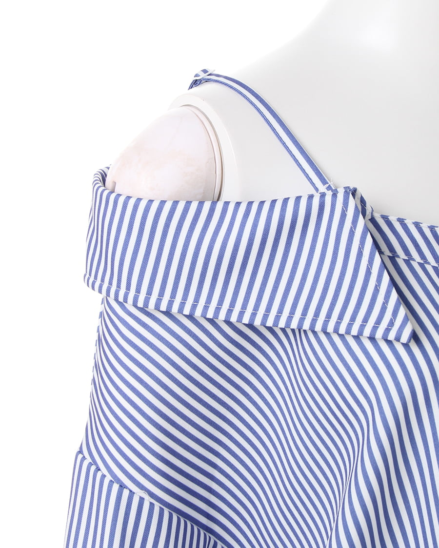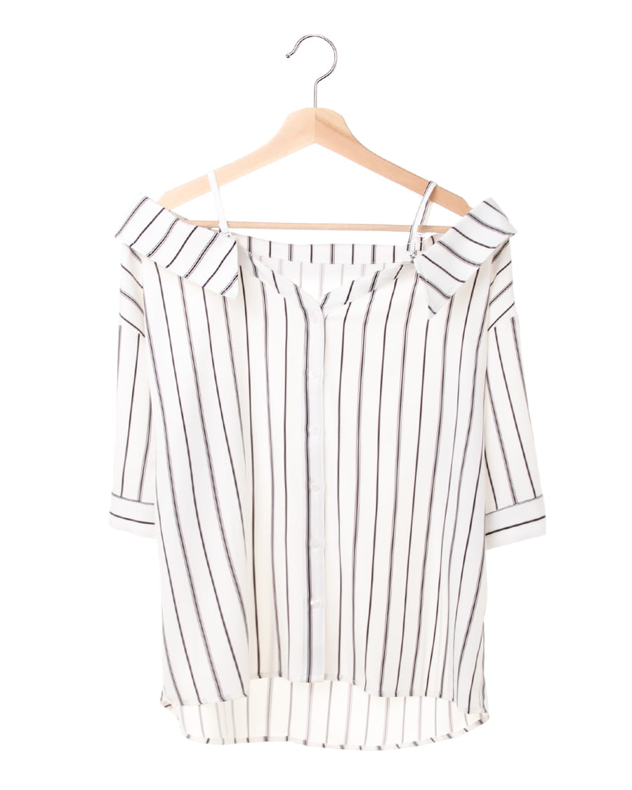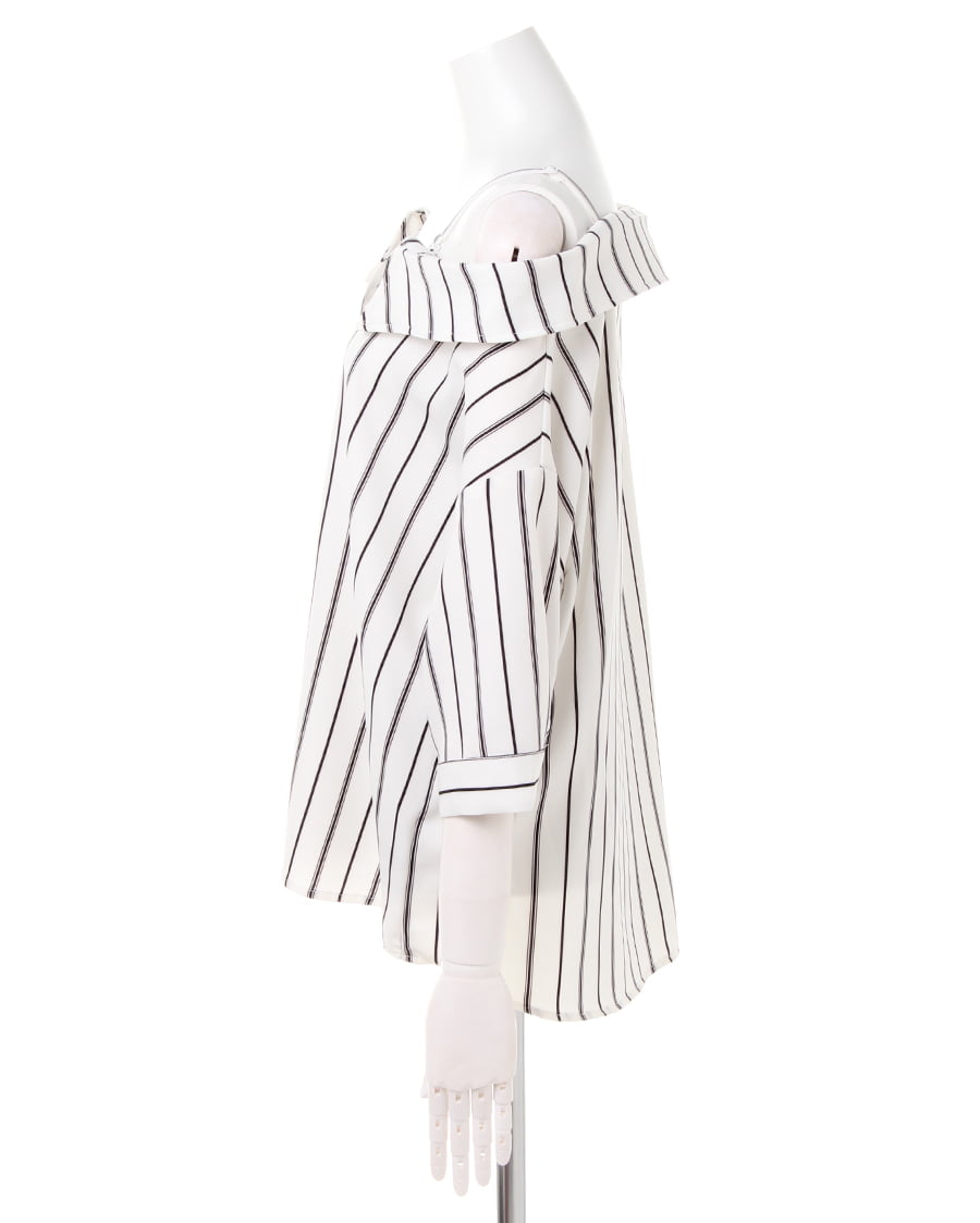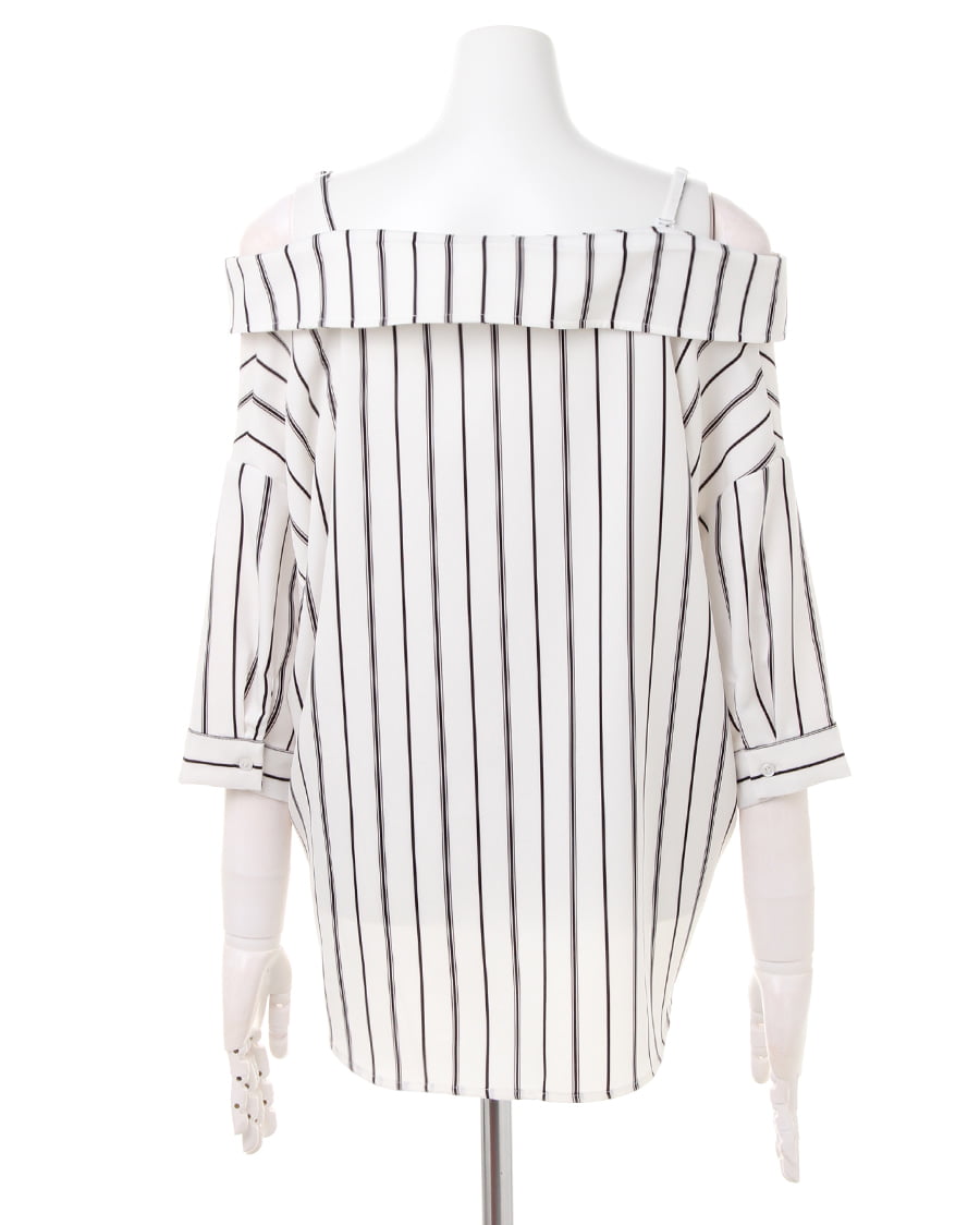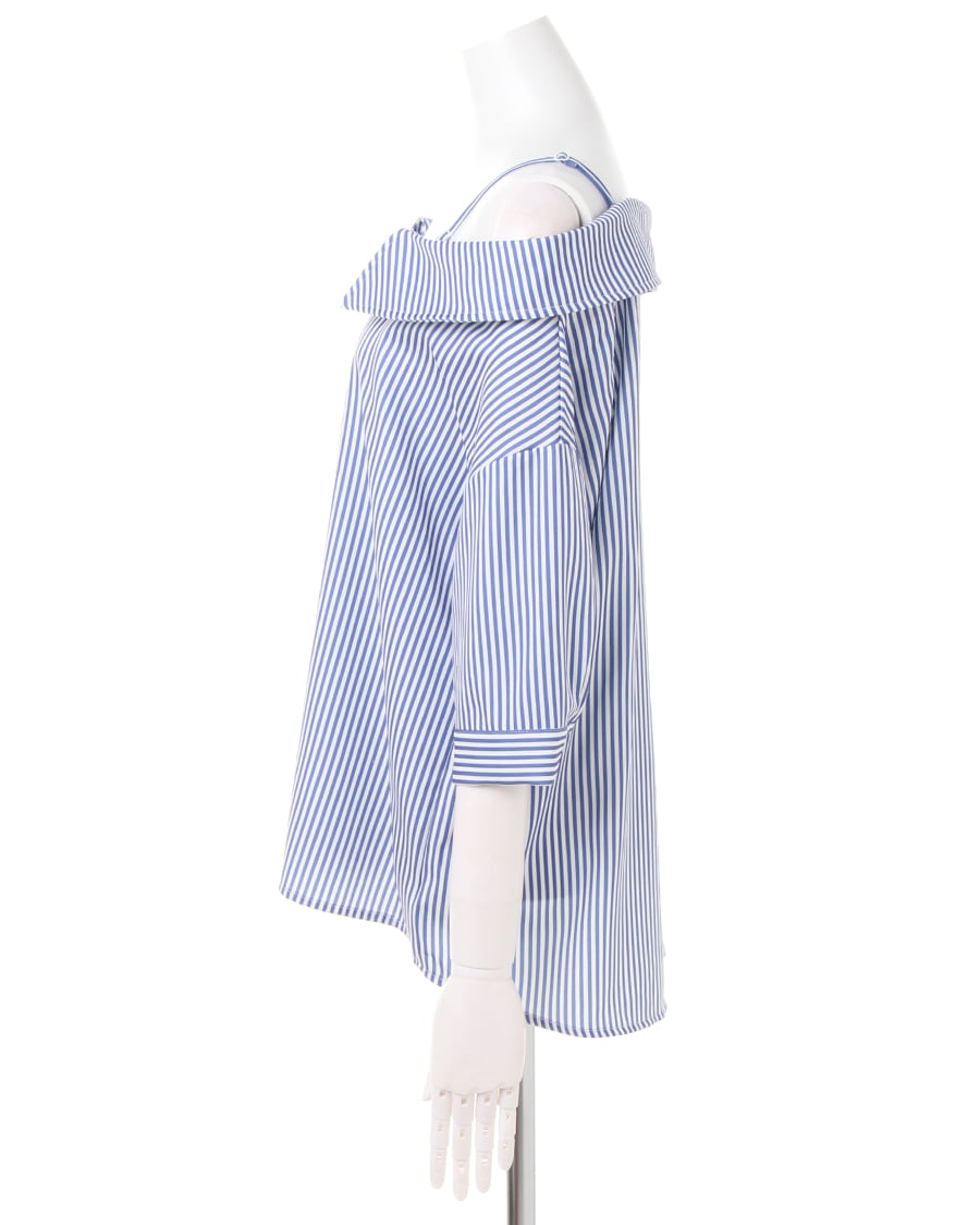 軽くて柔らかいシャツにオフショルデザインを落とし込んだトレンド感高めの1枚。きちんとした印象のシャツをキャミ風にアレンジしたデザインがエレガントな雰囲気。ヘルシーな肌見せが叶います。着崩れを気にせず着られる紐付きです。肩紐は調整も、取り外しができるのも魅力的。