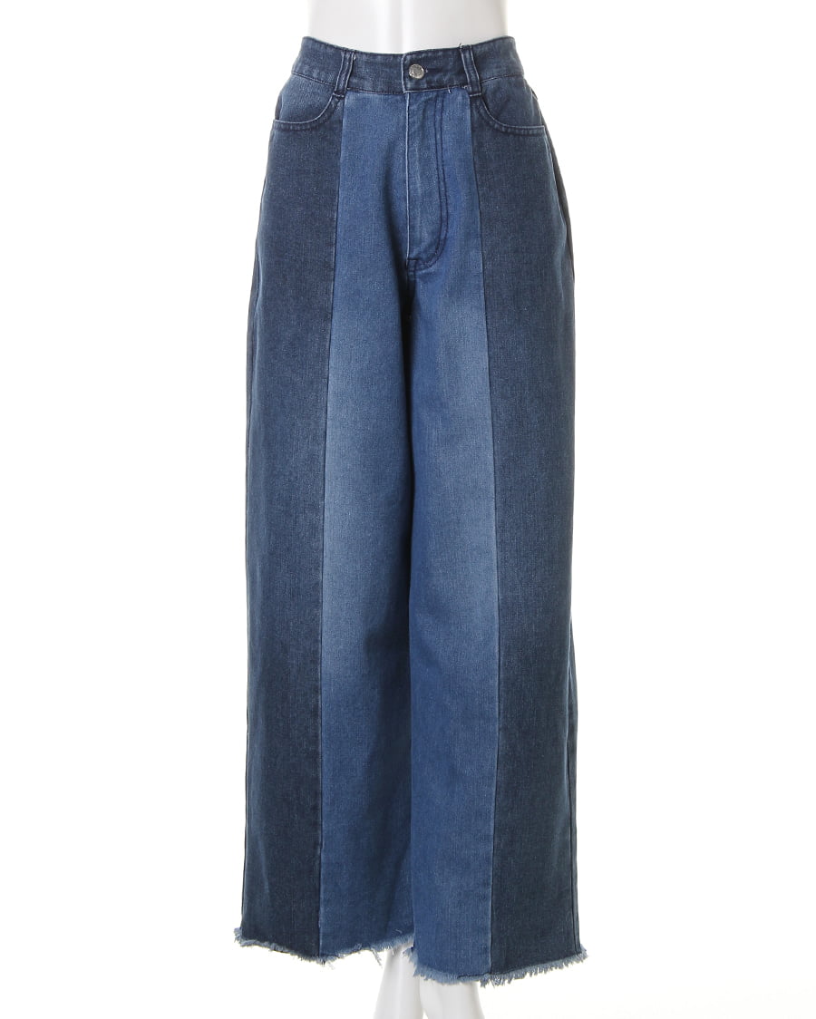 配色の組み合わせと断ち切りのデザインが今年らしいワイドデニム。穿くだけでこなれ感をプラスします。程よい幅が大人スタイルにぴったり。無駄のないシルエットが、きれいめなトップスからカジュアルまでコーデに困りません。ロングシーズン使える優秀アイテムは、1枚あれば重宝すること間違いなし。