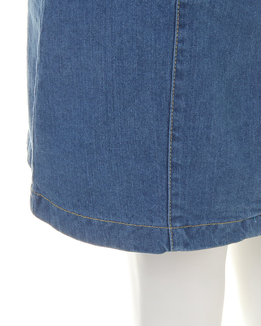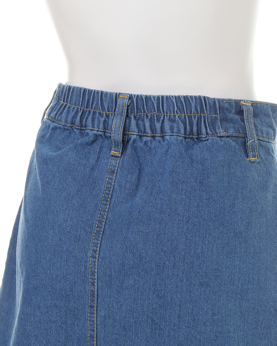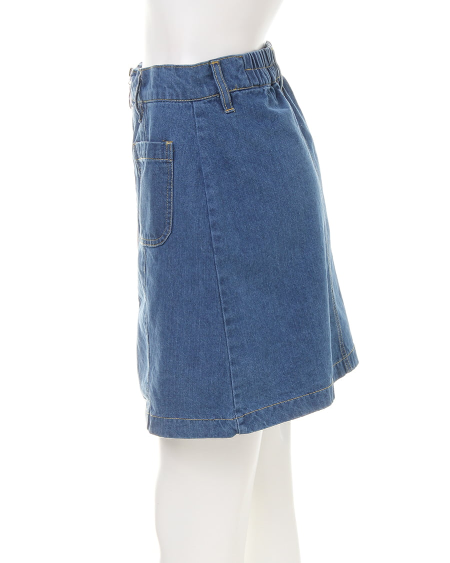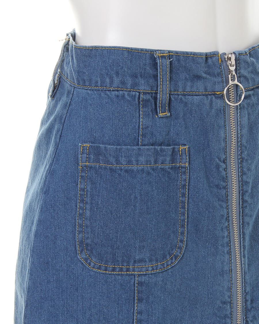 フロント部分のジップ使いがスタイリッシュ&クールな台形シルエットのスカートです。しっかりとした固めのデニム生地がキレイなラインをキープしてくれます。縦に切り替えのラインを入れることで腰周りをすっきり見せてくれるのでショート丈もバランスよく合わせられます。Tシャツやスニーカーでアクティブに着こなすのはもちろん、フェミニンなブラウスと合わせたスタイルもおすすめ。