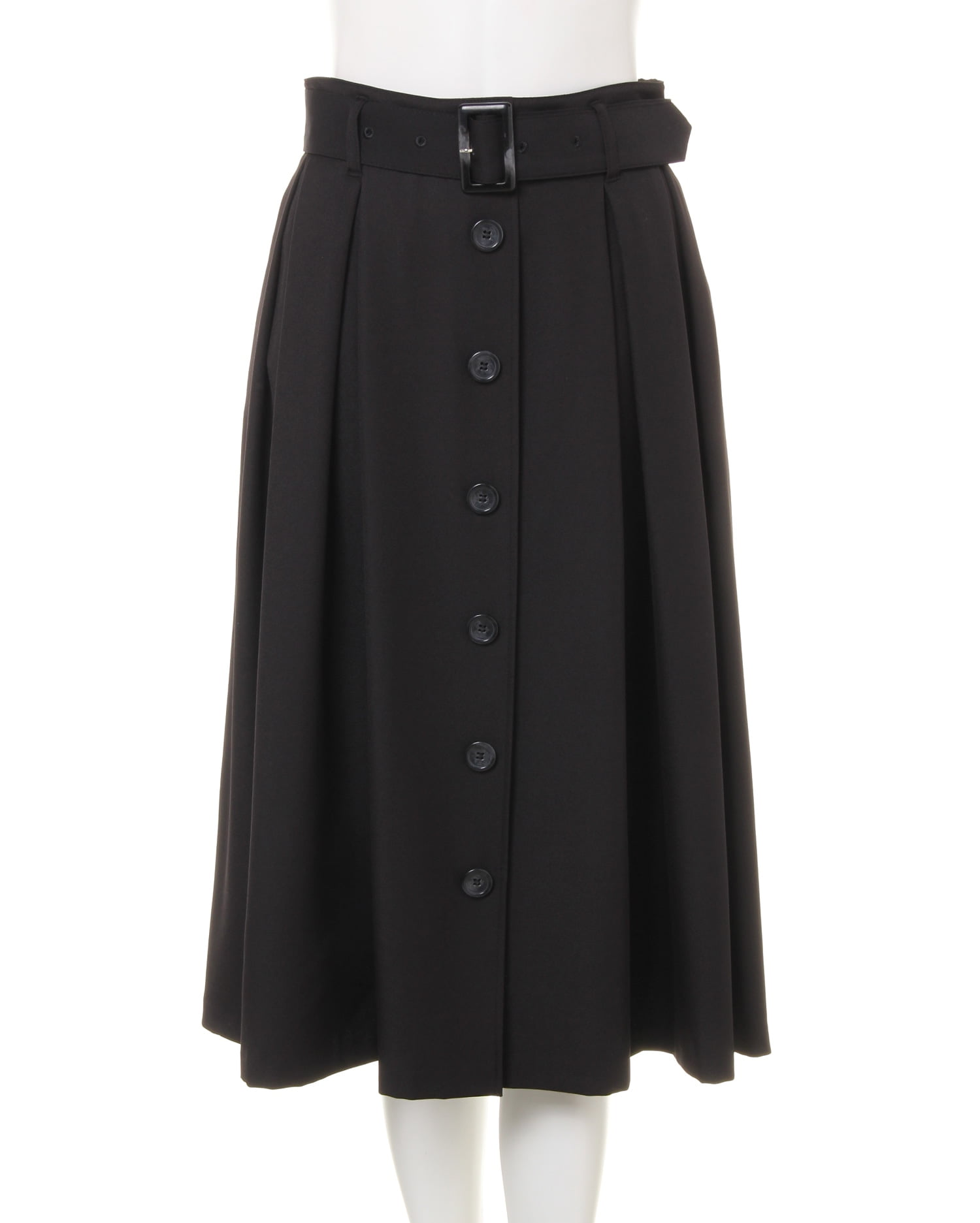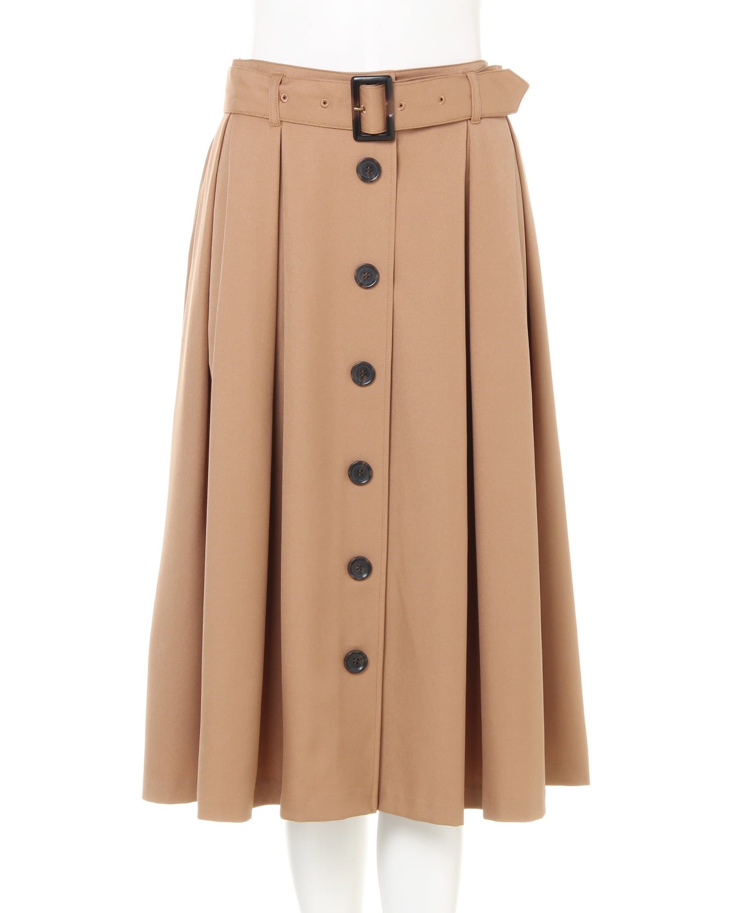 フレアシルエットやフロントのボタンデザインがクラシカルな印象のタックミディスカート。光沢のある生地やタックが上品な印象に。軽くてしわになりにくいので、お手入れが楽チンなのも魅力的です。スクエアバックルの共布ベルトでトップスインスタイルも決まります。今年らしいカラー展開にも注目。