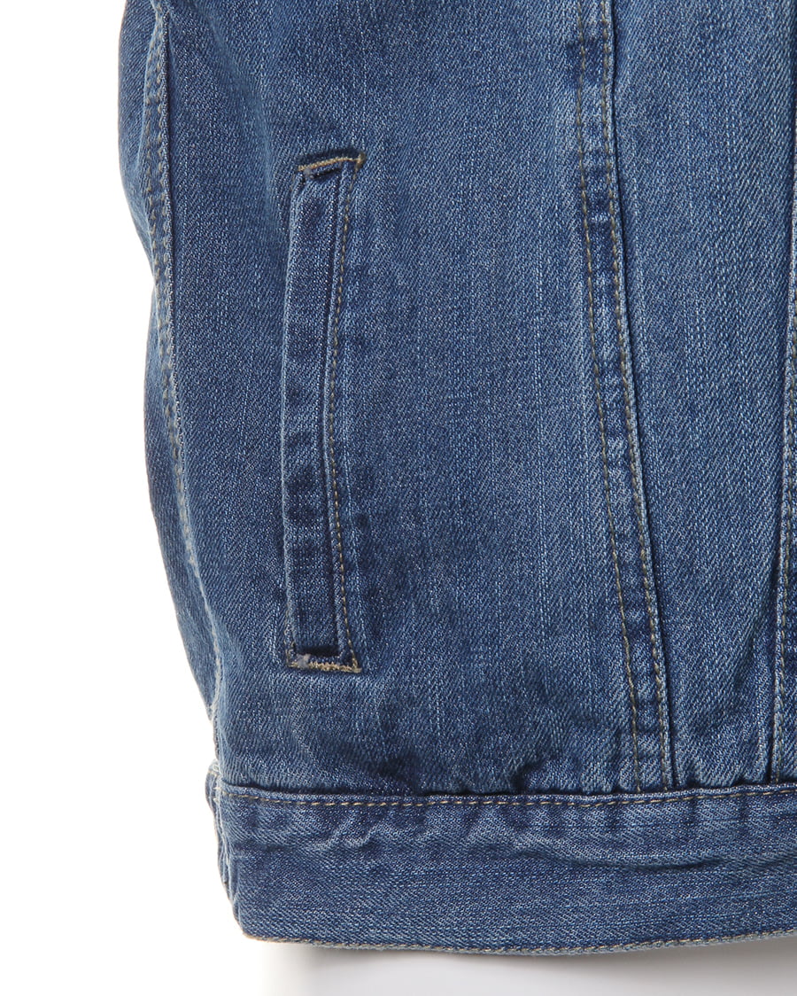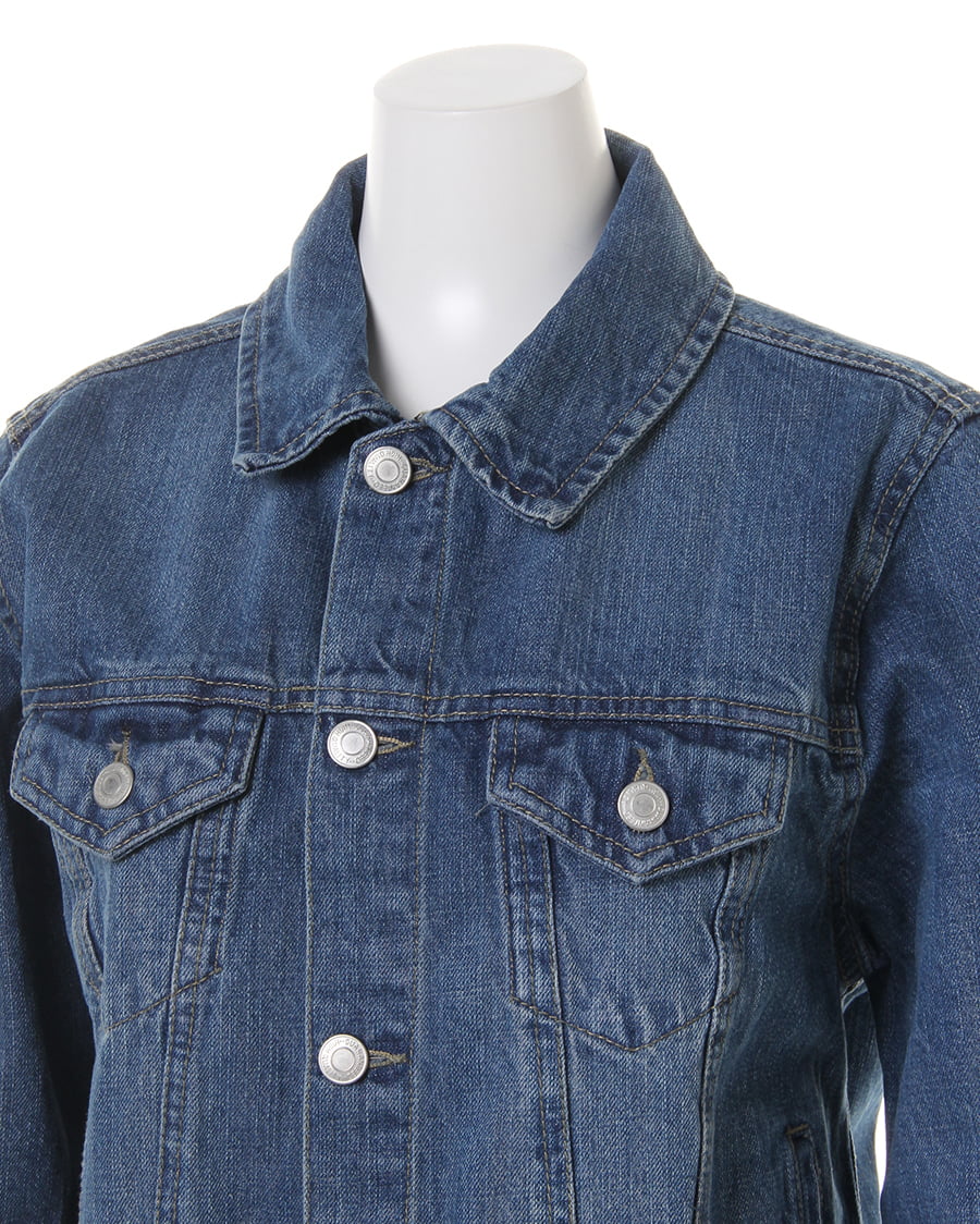 ワードローブにかかせないベーシックデザインのデニムジャケット。女性らしく着こなせるコンパクトなサイズ感に、サイドポケットをプラスした実用性にもこだわった一枚です。ヴィンテージライクなボタンや加工がクラシカルな印象に。フェミニンなスカートやワイドパンツなど、どんなコーデとも合わせやすく羽織りアイテムとしても重宝すること間違いなし◎。